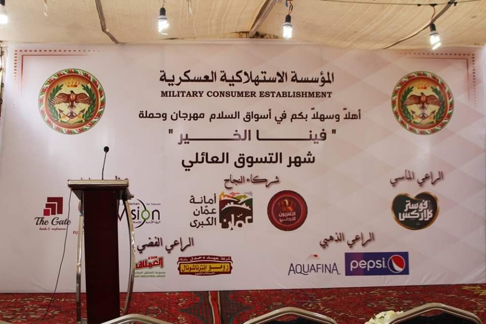 افتتحت المؤسسة الاستهلاكية العسكرية اليوم الخميس بالتعاون مع شركة الرؤيا الأردنية وشركة البوابة وعدد من الشركات مهرجان "التسوق في أسواق السلام"، حيث يتم عرض جميع احتياجات المواطنين من المواد الغذائية طيلة شهر رمضان المبارك.