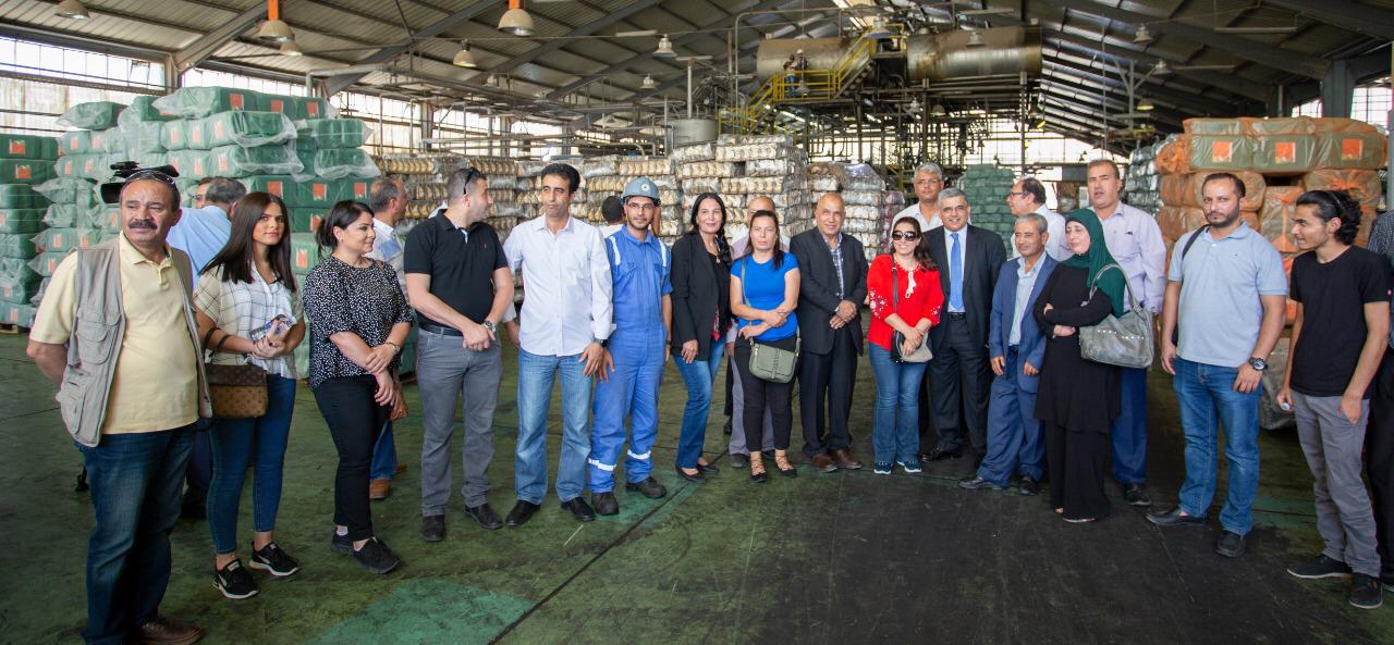الناطق الاعلامي باسم الشركة يرافق الصحافيين للاطلاع على التقنيات المتبعة في تصنيع زيوت جوبترول