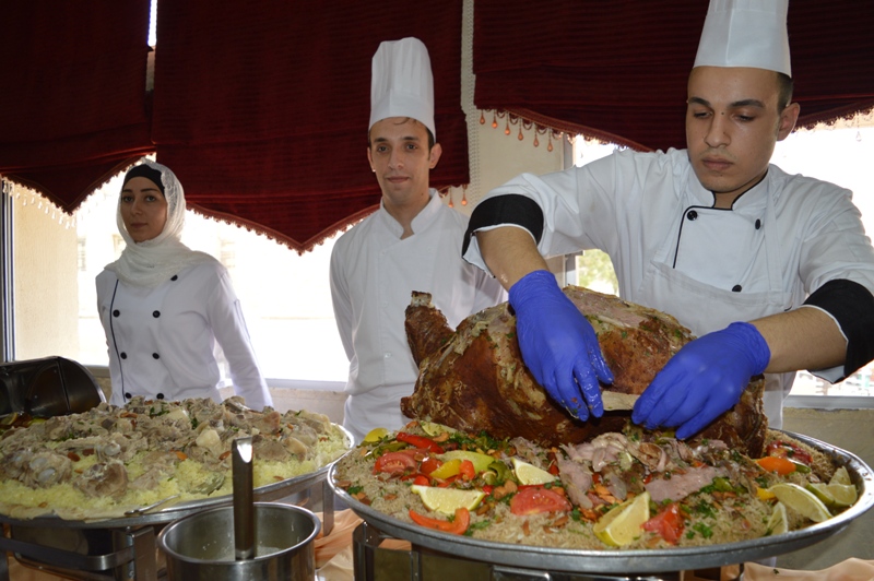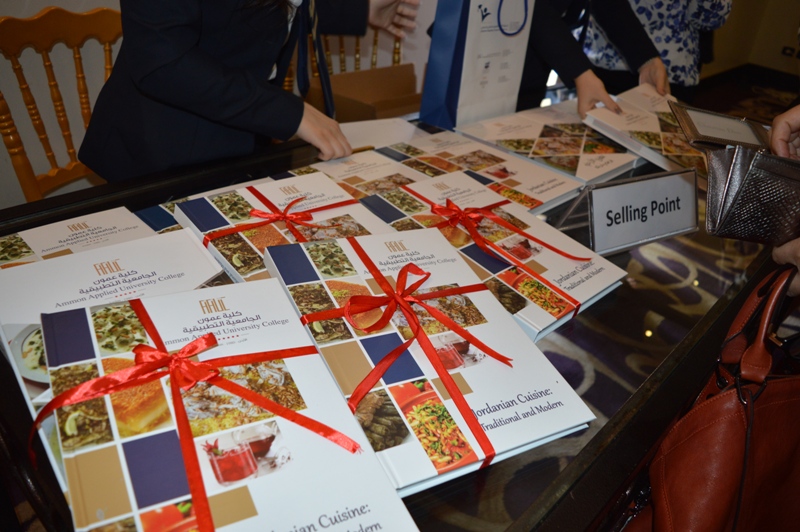 Jordanian Cuisine: Traditional and Modern ، اليوم الاربعاء الموافق 28/8/2019، والذي تم اصداره باللغة الانجليزية وذلك لتكرار الطلب على الكتاب من ضيوف الاردن. وقد حضر الحفل ممثلي القطاع السياحي والفندقي والمطاعم وجمعية المطاعم الأردنية، وجمعية الفنادق الأردنية وهيئة تنشيط السياحة، والاسواق الحرة الاردنية وجمعية الطهاة الاردنية، ونخبة من سيدات ورجال المجتمع المحلي حيث قام عميد الكلية الدكتور محسن مخامرة في بداية الحفل بالقاء كلمة ترحيبية وعرض برامج الكلية المختلفة لدرجة البكالوريوس والدبلوم والدورات التدريبية ونشاطات الكلية، ثم تم دعوة راعي الحفل وسعادة المهندس نديم المعشر نائب رئيس مجلس الامناء ورئيس هيئة المديرين وعميد الكلية لتوقيع الكتاب. ومن ثم تم دعوتهم لتقطيع الكعكة التي اعدت على شكل كتاب المطبخ الاردني.