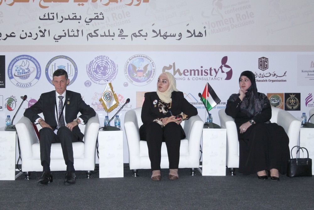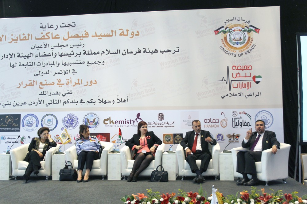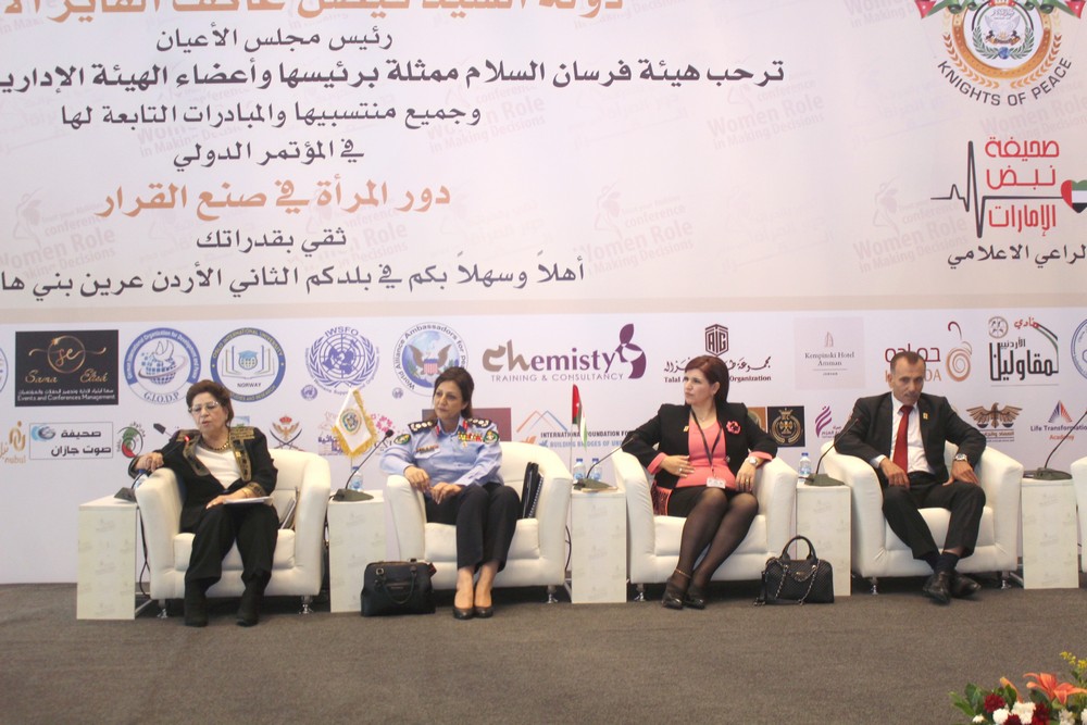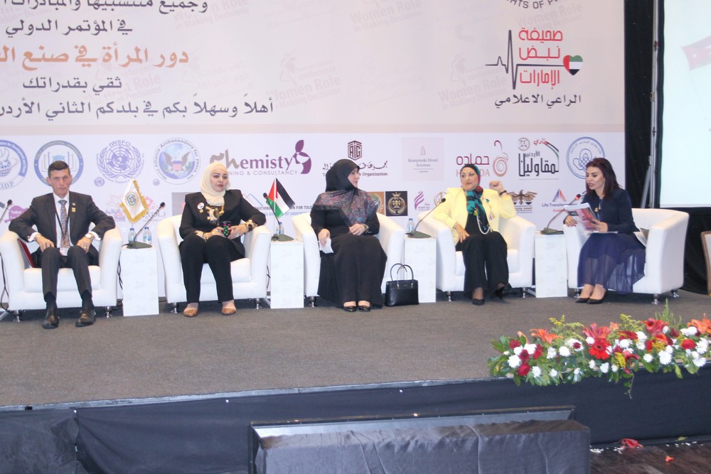ويهدف المؤتمر الذي افتتحته العين أمل الفرحان، مندوبة عن رئيس مجلس الأعيان فيصل الفايز إلى تعزيز مشاركة المرأة في صنع القرار، ومساهمتها في تحقيق التنمية الشاملة على أساس المشاركة والفرص المتساوية.