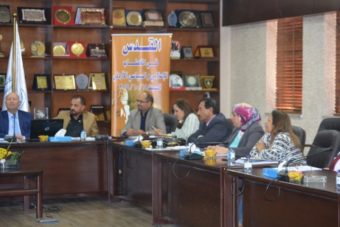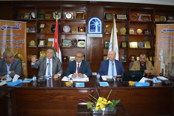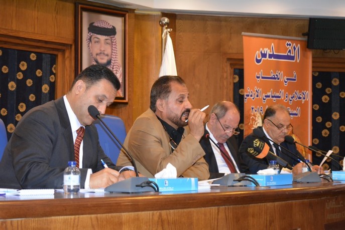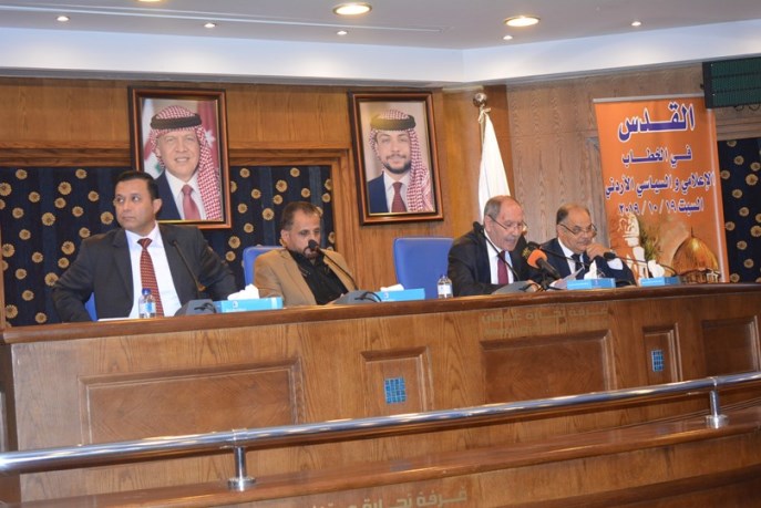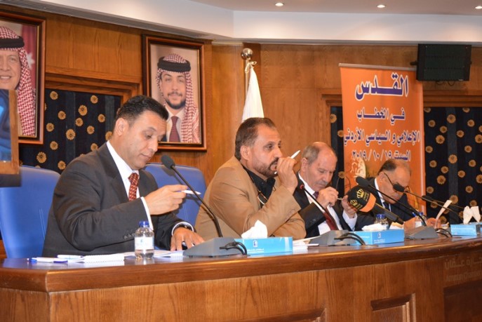 وأكد ضرورة إيجاد خطة شاملة تنطلق من الواقع قائمة على خطاب موحد في الحديث عن أن مسألة المسجد الأقصى المبارك دينية وضرورة وحدة الكلمة العربية والإسلامية، ورفض الروايات التلمودية، وعدم ترك المكان فارغ "المسجد الأقصى" بحجج واهية. وأشار إلى أن الوصاية الهاشمية شكلت قوة وحماية للمقدسات الإسلامية والمسيحية في القدس الشريف. بدوره أكد رئيس جمعية المذيعين الأردنيين محمد العضايلة دور الجمعية في المؤتمر الإعلامي الخامس الذي تقيمه الجمعية، موضحا بأن مؤتمرات وندوات الجمعية لا تكاد تحيد عن القدس الشريف. وأضاف ان هذا المؤتمر يأتي في ظل ضغوطات تمارس على الاردن في ظل مواقفه الراسخة من القضية الفلسطينية والقدس بمقدساتها الإسلامية والمسيحية، مؤكدا أن تحطيم الصفقات والمؤامرات لا يتم الا من خلال تحقيق الوحدة الوطنية والالتفاف خلف القيادة الهاشمية. وعلى هامش أعمال المؤتمر افتتح ابو البصل معرض الصور الذي يتحدث عن القدس والمسجد الأقصى المبارك والذي اقامته مديرية التوجيه المعنوي في القوات المسلحة الأردنية_الجيش العربي. وناقش المؤتمر خلال جلساته القدس في الإعلام المرئي والمسموع الأردني قدمها الإعلامي جرير مرقة، فيما تحدث الصحفي حيدر المجالي عن القدس في الصحافة الأردنية المكتوبة والالكترونية. وتحدث أمين عام وزارة الاوقاف المهندس عبدالله العبادي عن التراث الثقافي والحضاري للقدس والدور الأردني في الحفاظ عليه، كما تحدث الدكتور غازي ربابعة عن القدس في الخطاب السياسي الأردني.
