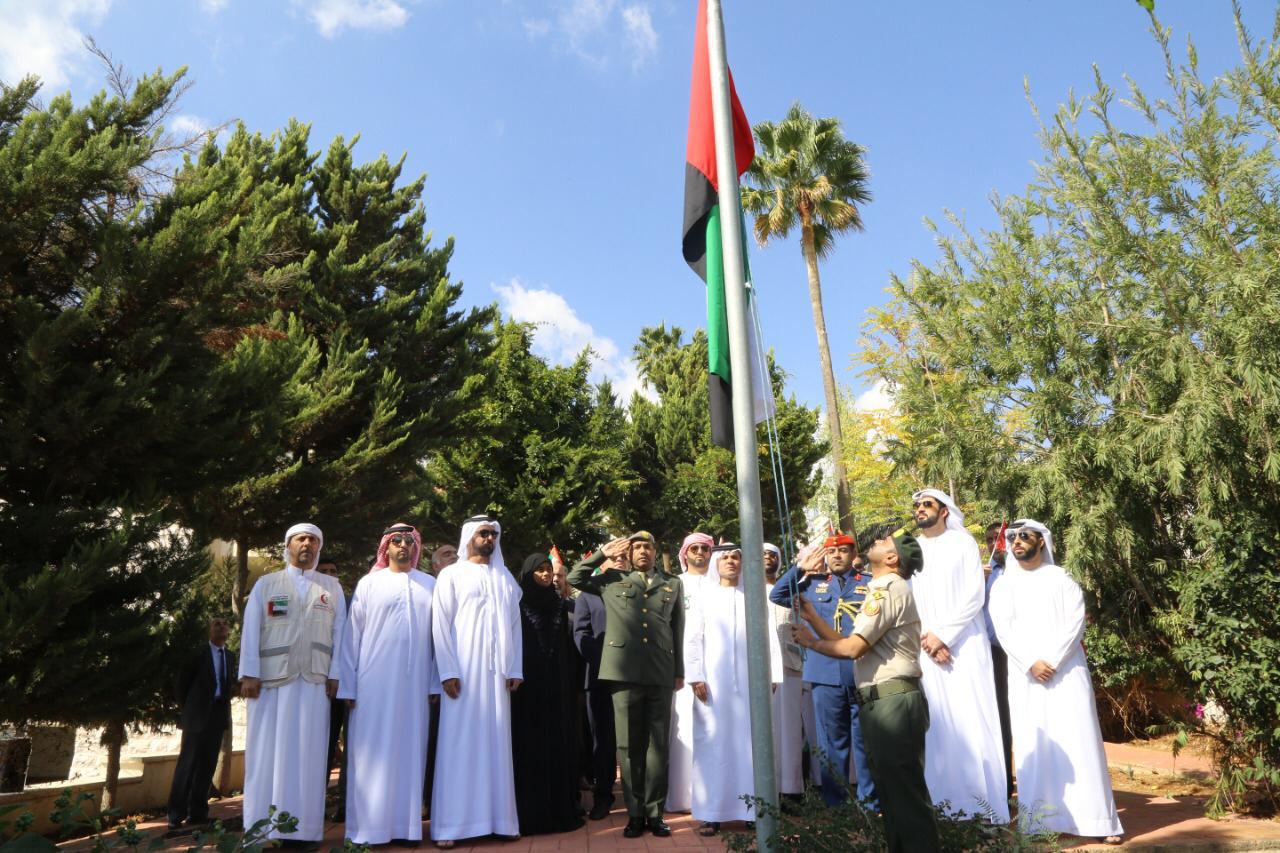 وبمشاعر تغمرها الفخر والانتماء، تم رفع علم الاتحاد في تمام الساعة 11 صباحاً بتوقيت الأردن، وسط أجواء إحتفالية حضرها أعضاء البعثة الدبلوماسية وعدد من أعضاء الفريق الإغاثي التابع لهيئة الهلال الأحمر الاماراتي وموظفي السفارة والملحقية العسكرية، وجمع من أبناء دولة الإمارات المتواجدين بالأردن.