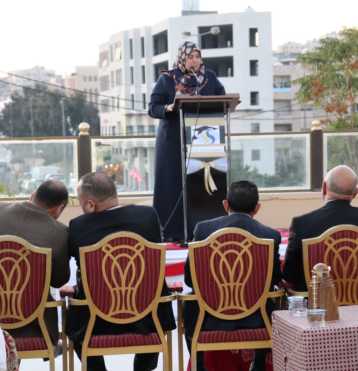 والقت مديرة الأكاديمية الأستاذة علا فوزان العبادي كلمة قدمت شرحا عن أهداف الأكاديمية والخدمات المقدمة فيها،بهدف توفير للطلبة الراغبين تحسين مستواهم عبر اللغات العربية والانجليزية والفرنسية والتركية ،وتحسين النطق ،وتوفير قاعات للطلبة الجامعيين للدراسة.