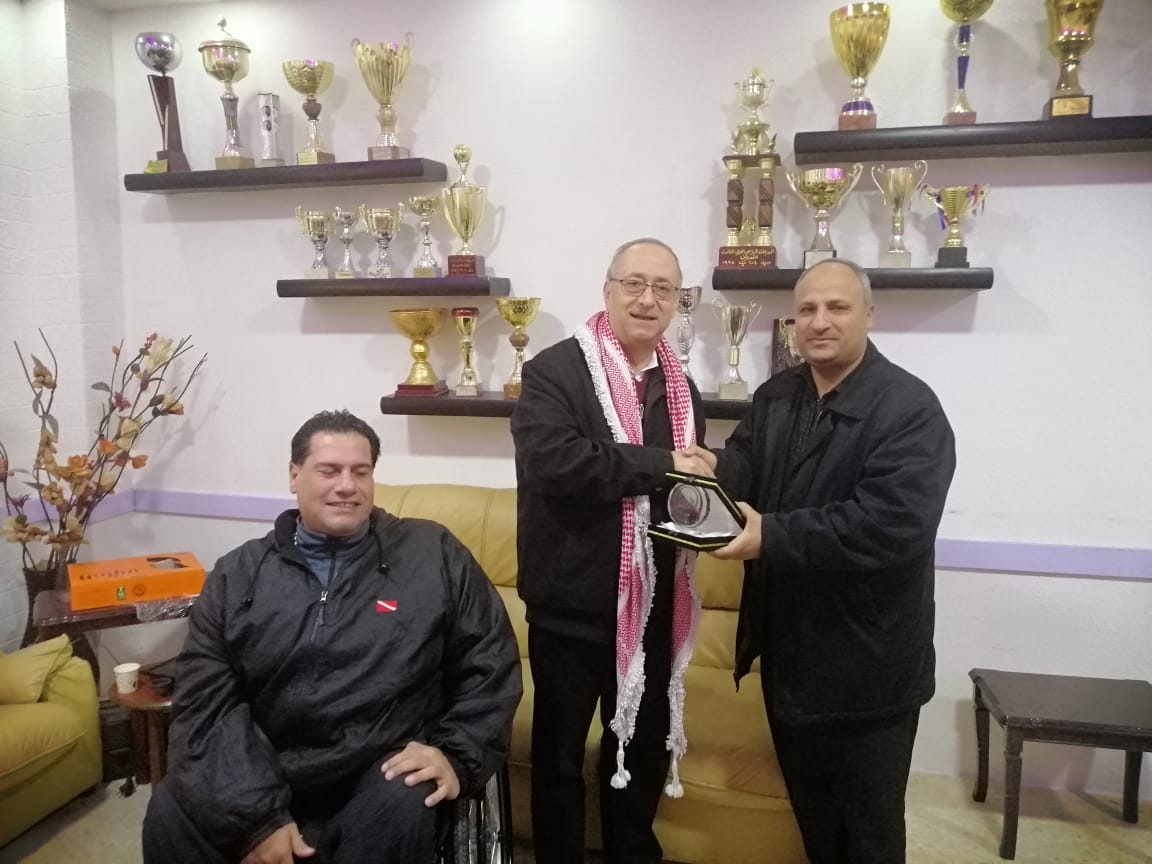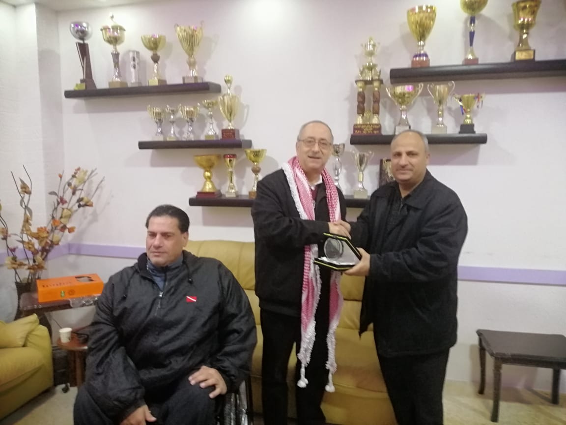 حيث قام شاهين بتوزيع الهدايا وشكر ادارة النادي ،وقدم الكسواني درع تكريمي لجهود السيد شاهين ،على زيارته للنادي.