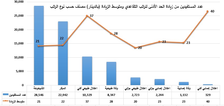 37 ألف متقاعد تراوحت زيادتهم المستحقة بين 20 و30 ديناراً شهرياً.