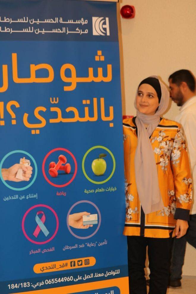 وتحدثت دكتورة التغذية نور سعيد عن أهمية الغذاء السليم للوقاية من مرض السرطان وضرورة الابتعاد عن الاطعمة غير الصحية، والقت السيد لارا من مبادرة رعاية ندوة تعريفية باهمية التأمين الصحي لمرض السرطان ومن خلال الاشتراك في مبادرة رعاية التي تتيح للمريض العلاج في مؤسسة الحسين للسرطان مقابل قسط سنوي بسيط.