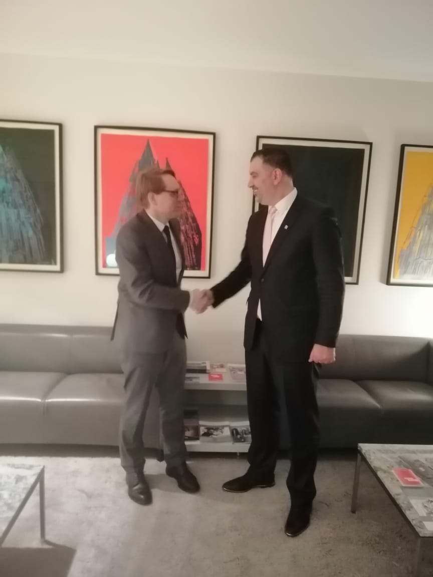 والتقى البطاينة خلال زيارته مه ممثل ولاية شمال الراين- ستيفاليا وتم بحث امكانية توفير كفاءات بشرية من الاردن في مختلف التخصصات، كما تم الاتفاق على ان يقوم ممثل شمال الراين بتزويد وزارة العمل الاردنية بالاحتياجات والمتطلبات من المهن والتخصصات المطلوبة للعمل، كما رحب ممثل ولاية شمال الراين بتنفيذ مشروع تجريبي للتشغيل في أكبر القطاعات التي عليها طلب والتشبيك مع المكتب المشغل في ولايته.