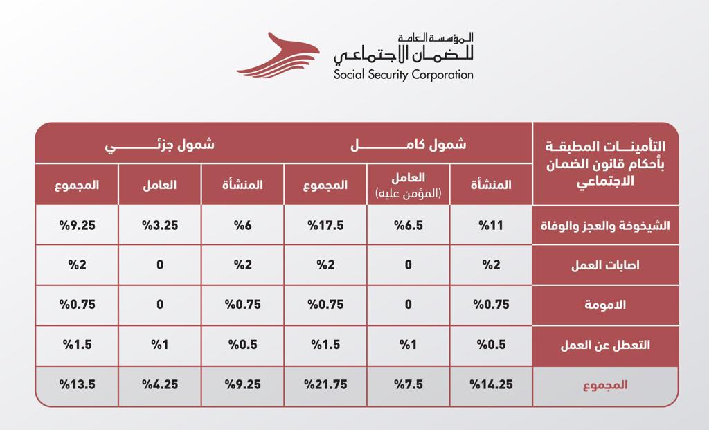 وبيّنت المؤسسة أن المنشآت المستفيدة من هذا البرنامج تلتزم بشمول العاملين لديها بتأمين الشيخوخة بشكل جزئي مقابل اشتراكات شهرية بنسبة (8.25%) تتحمل المنشأة من ضمنها (5٪) فيما يتحمل العامل (3.25%)، كما تلتزم بشمول العاملين لديها في باقي التأمينات، موضحةً أن جميع ما يترتب على المنشأة والمؤمن عليه العامل وفقاً لهذا البرنامج يصل إلى (13.5%) بدلاً من (21.75%)، مضيفةً أنها ستصدر تعليمات لتحديد المنشآت والقطاعات المتاح لها الاستفادة من هذا البرنامج.