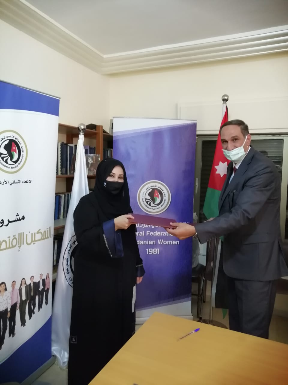 وقد وقع الاتفاقية ممثلا عن الاتحاد العام الدكتورة ميسون تليلان رئيس الاتحاد وعن شركة اقراب العالمية اطراد المجالي مدير عام الشركة بحضور عدد المدراء وموظفي الطرفين.