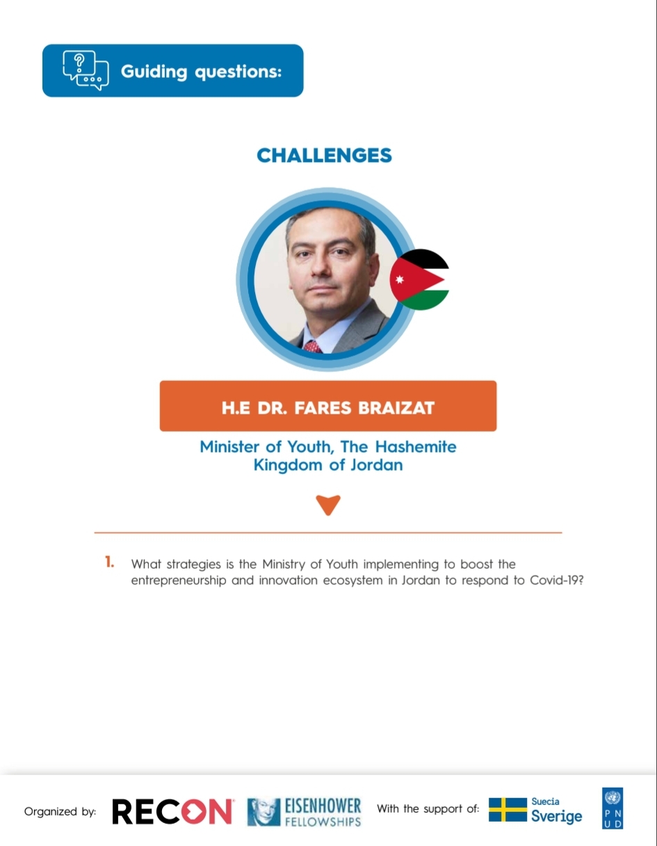 شارك وزير الشباب الدكتور فارس البريزات، أمس الجمعة، في ندوة حوارية عن بعد، تحت عنوان" القيادة، التحديات، الفرص، في العالم ما بعد كوفيد 19".