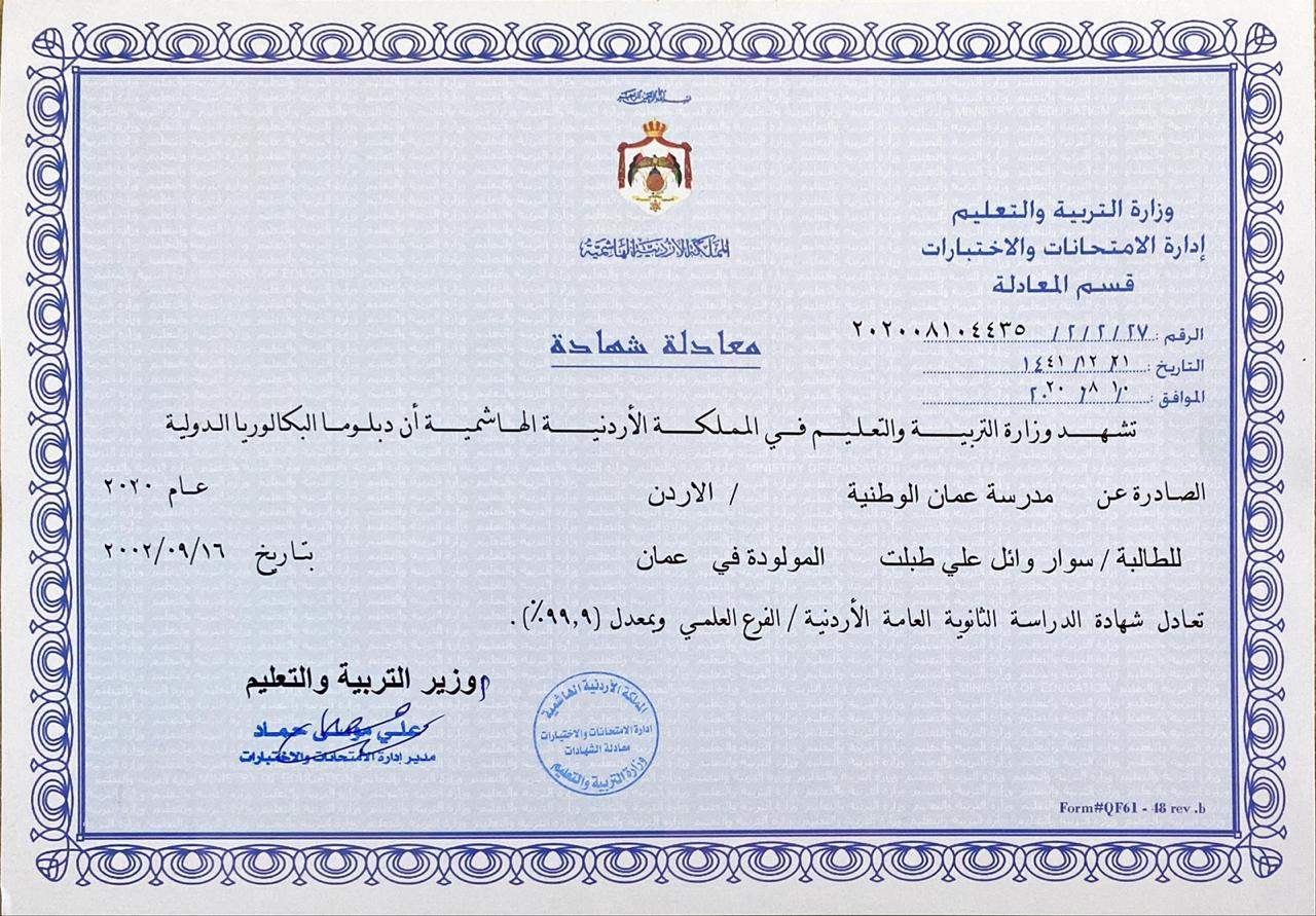 حققت الفارسة سوار وائل طبلت معدل 99:9٪في امتحان الثانوية العامة الفرع الأجنبي من مدارس عمان الوطنية ، وسوار كانت بداياتها مع الفروسيةمن مركز فورست هيل، وشاركت في منافسات دولية في روسيا وبلغاريا ومصر، إضافة للمنافسات المحلية.