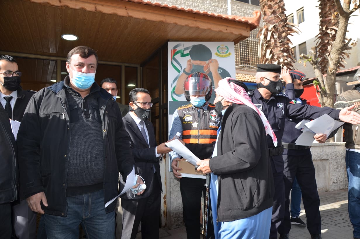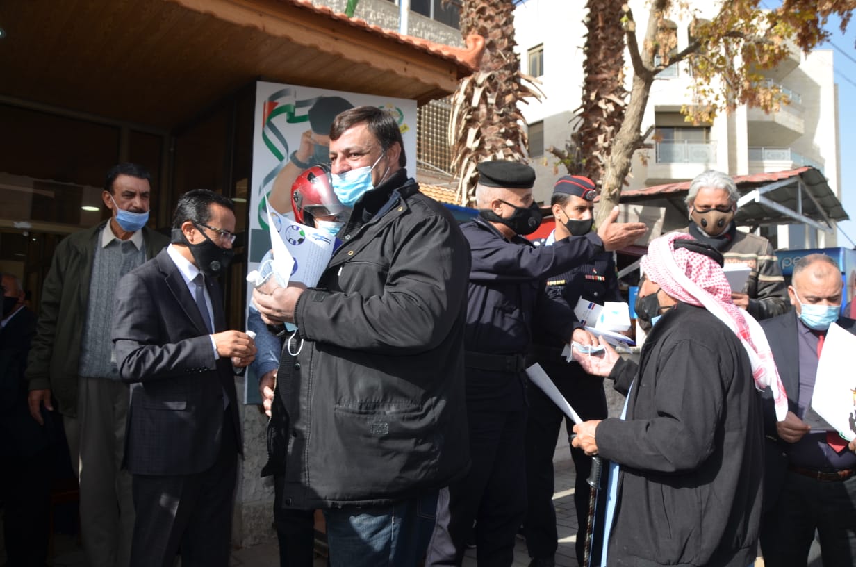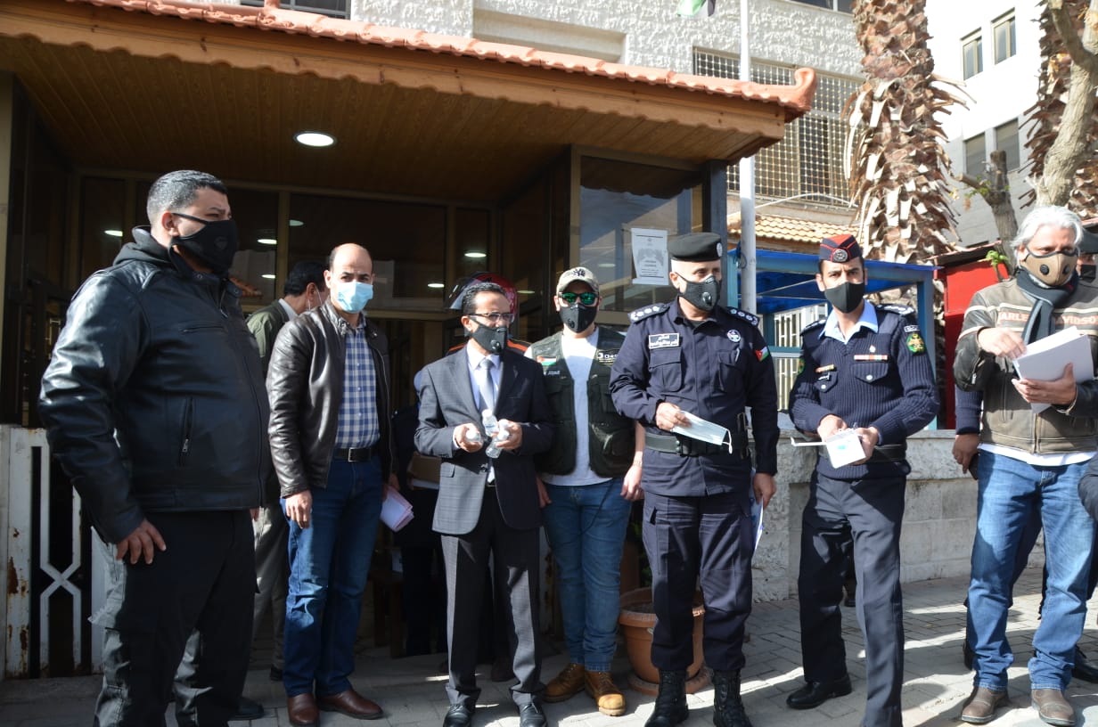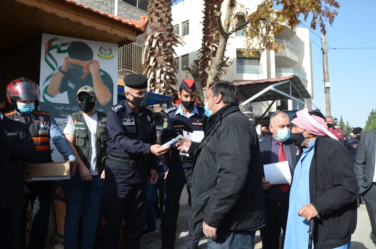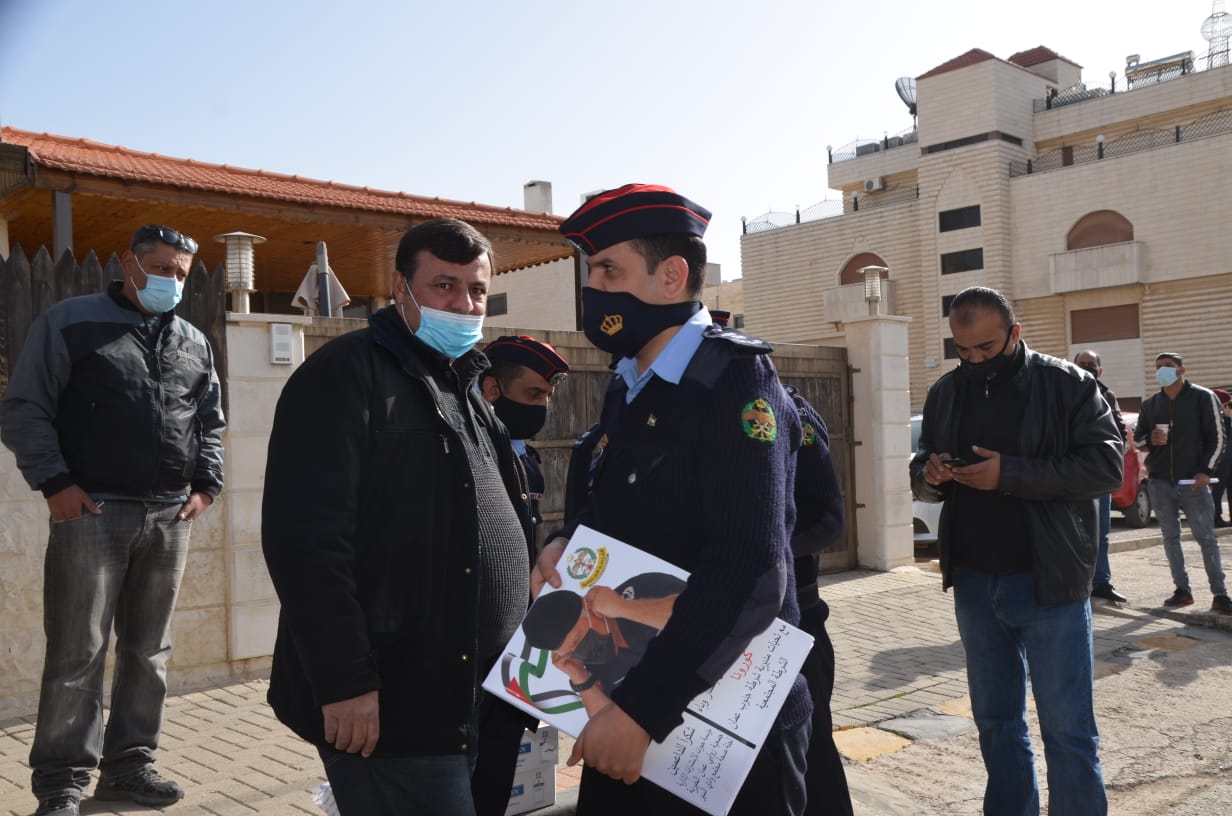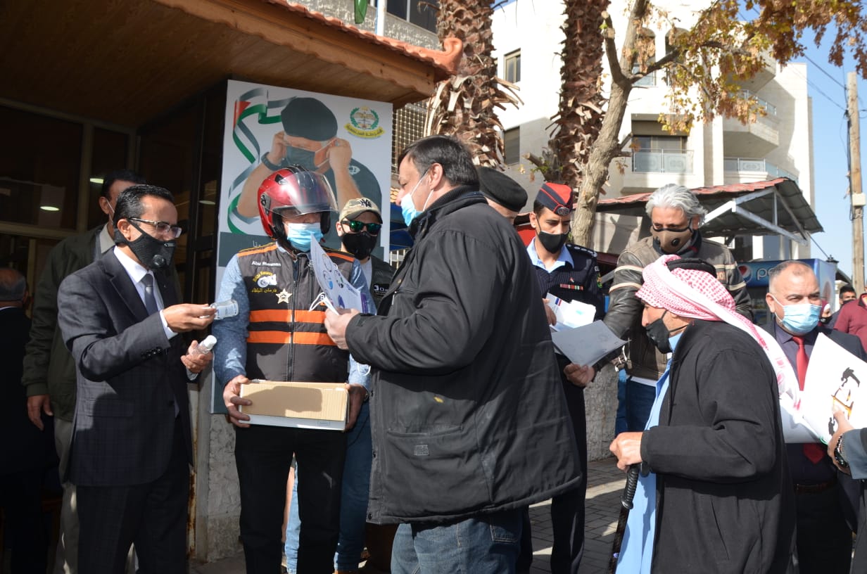 وقام العقيد الدعجة ومتصرف لواء وادي السير ورئيس محكمة غرب عمان ورئيس واعضاء المجلس الأمني المحلي لمركز امن البيادر والمتطوعين بتوزيع الكمامات والمعقمات والبروشورات التوعوية على المواطنين .