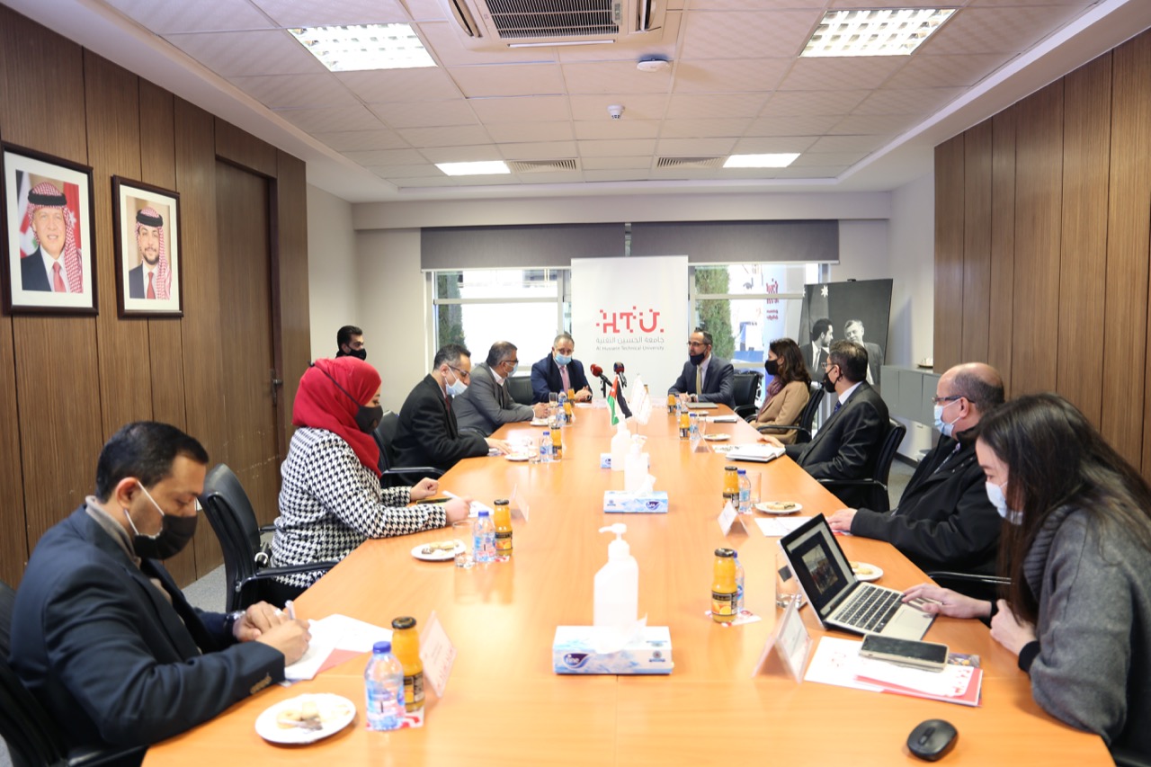 واستعرض الحنطي خلال الاجتماع مشروع أكاديمية الحسين التقنية HTU+ الممول من خلال بنك الانماء الالماني،، وبدعم من وزارة العمل ومؤسسة التدريب المهني وهيئة تنمية وتطوير المهارات المهنية والتقنية.