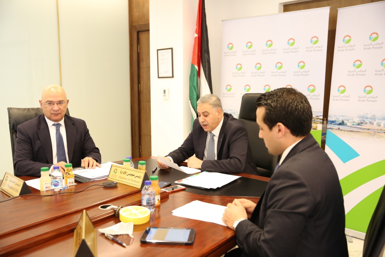 وتطرق الدكتور النسور، إلى عدد من القرارات الجوهرية التي اتخذتها الإدارة التنفيذية للشركة خلال جائحة كورونا والتي كان من أبرزها الاستمرار في عمليات الإنتاج والبيع والنقل والتصدير بوتائر عالية خلال فترة الحظر، وباستخدام ما يقارب (35%) من القوى العاملة وذلك بعد الحصول على الموافقات اللازمة من المؤسسات الحكومية الأردنية المعنية، الذي كان له دور رئيسي في تحقيق الشركة لهذه النتائج المتميزة، حيث سعت الإدارة إلى الوفاء بالتزاماتها وتنفيذ عقودها المبرمة مع المشترين لمادة البوتاس الأردني من خلال ضمان استمرار عمليتي الإنتاج والتصدير. وعلى صعيد تطوير منتجات الشركة، كان لقرار الإدارة التنفيذية المتمثل بإنتاج مواد ذات عوائد ربحية أعلى مثل البوتاس الحُبيبي الأحمر والدخول بفضل هذا المنتج لأسواق جديدة مثل البرازيل وأستراليا وفيتنام والولايات المتحدة الأمريكية، دوراً فاعلاً أسهم في تخفيف أثر الانخفاض الحاد في أسعار بيع البوتاس العالمية في العام الماضي،