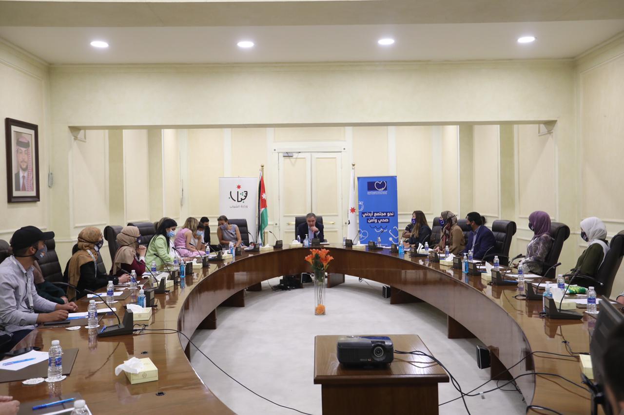 جاء ذلك خلال لقائه أمس الثلاثاء في مقر الوزارة بضباط إرتباط المحافظات لمبادرة "شباب إلك وفيد" التطوعية، بحضور المدير العام للجمعية الملكية للتوعية الصحية ديما جويجان، وممثلة منظمة اليونيسف في الأردن تانيا شابوسايت، ومديرة مديرية الإعلام والتثقيف الصحي في وزارة الشباب الدكتورة عبير موسوس .