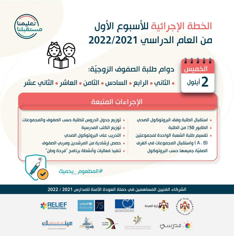 بالتفاصيل ... التربية تعلن شكل دوام المدارس من 1 حتى 21 أيلول