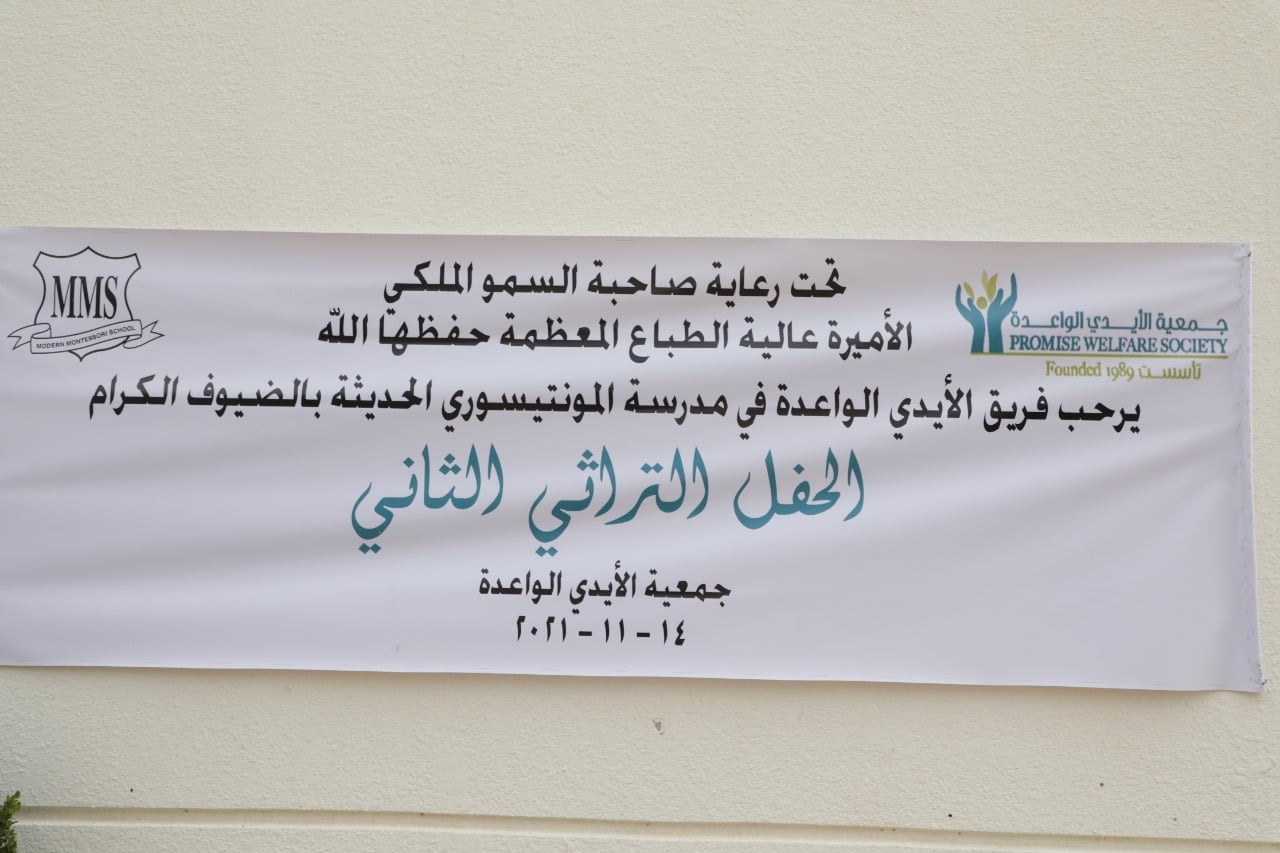 عمان- إنطلاقا من اهتمام جمعية الأيدي الواعدة الخيرية بالشباب؛ واعدادهم للمستقبل؛ أقامت الجمعية برعاية سمو الأميرة عالية الطباع رئيسة الجمعية حفظها الله؛ النشاط التراثي الثاني؛ والذي أقيم على مسرح مدرسة المونتيسوري؛ وبمشاركة كل من مدارس: المونتيسوري الحديثة؛ البيان؛ راهبات الوردية/ مرج الحمام؛ فيلادلفيا الوطنية؛ المعارف واليوبيل.