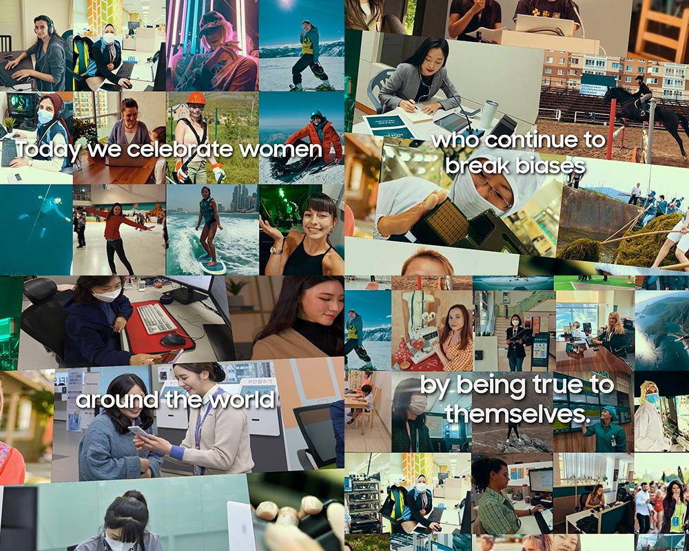 واحتفالاً باليوم العالمي للمرأة هذا العام، نظمت سامسونج حملة عالمية لموظفيها لتقديم صور لهم وتشكيل صورة رسمية لهذا الحدث، مع استخدام كل واحد منهم ذراعيه على شكل الحرف (X)، للجمع بين موظفي الشركة من جميع أنحاء العالم تقريباً، والخروج بعمل جماعي يدل على التضامن. وإضافة إلى ذلك، أعدت الشركة مقطع فيديو خاصاً باليوم العالمي للمرأة، ويظهر موظفات سامسونج وهن يتابعن حياتهن وروتينهن اليومي، ويقدمن دعمهن لقضية اليوم العالمي للمرأة.