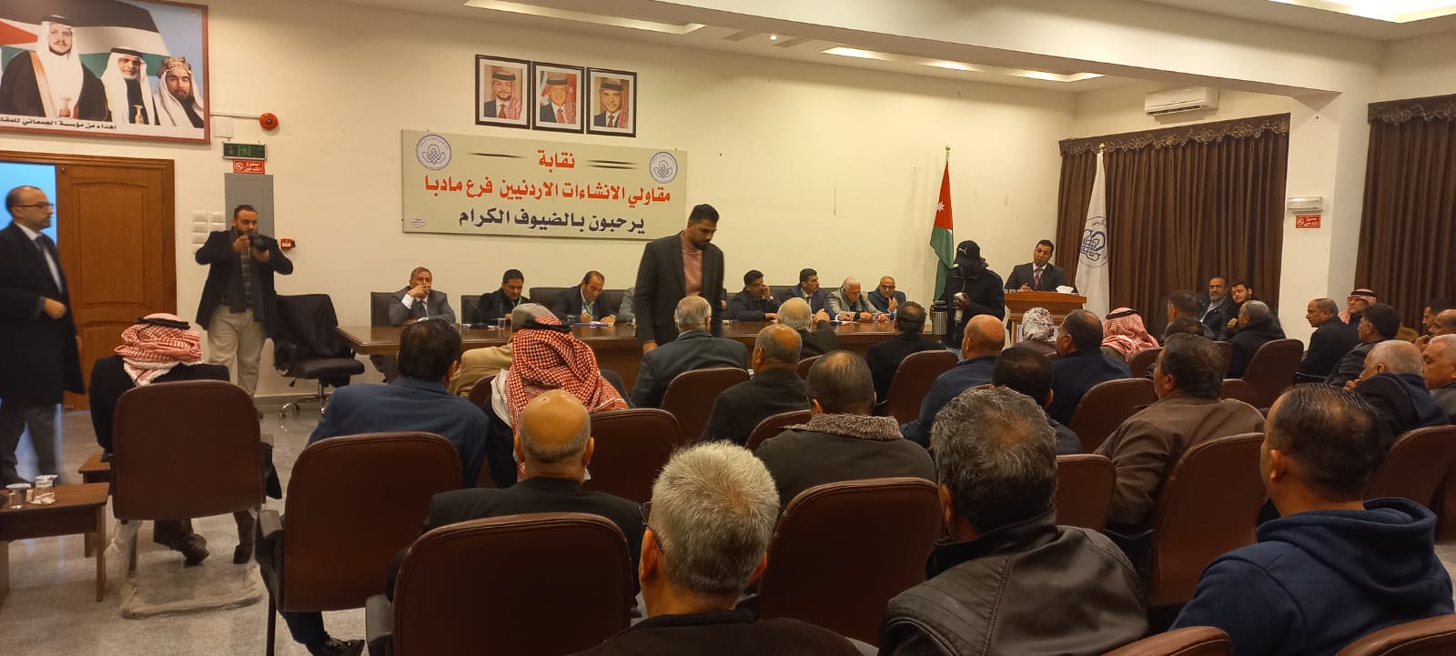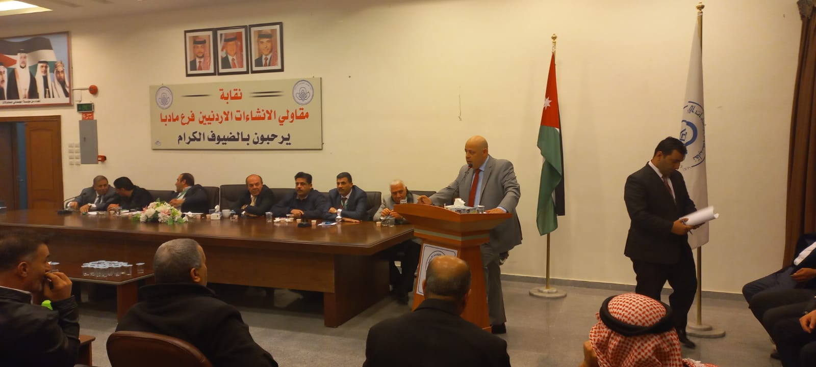 اقامت كتلة الوفاء اجتماع مع مقاولي الانشاءات في محافظة مادبا لدعم الكتلة ومؤازرتها ولطرح افكارهم وبرامجهم الانتخابية الهادفه، والتي تصب جميعها في مصلحة المقاول والاستماع الى هموم ومشاكل قطاع المقاولين في محافظة مادبا.
