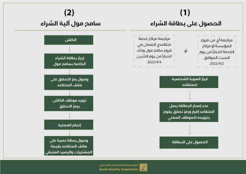 ولهذه الغاية، نشرت المؤسسة مخطط توضيحي لآلية الحصول على البطاقة وكيفية الشراء من خلالها.
