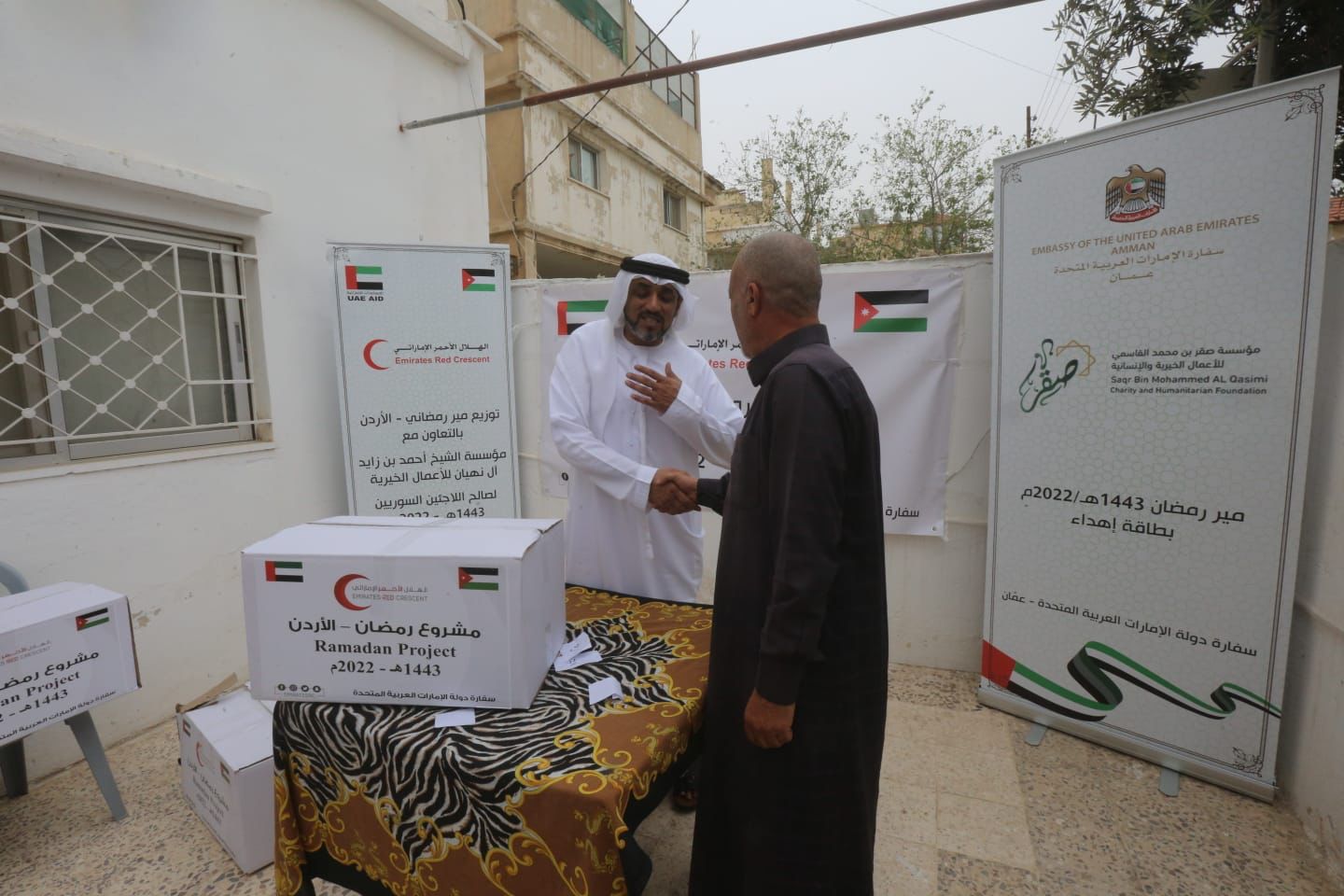 نظمت سفارة الدولة في عمّان، مبادرة توزيع المساعدات على مئات الأسر المستحقة من المواطنين الأردنيين واللاجئين السوريين في محافظة المفرق خلال شهر رمضان الفضيل.