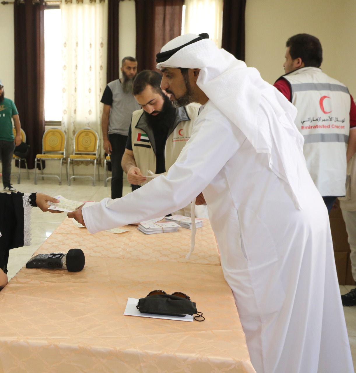 وشارك السيد خالد النعيمي رئيس قسم الخدمات المساندة بالسفارة، جانباً من عملية تسليم هذه المساعدات إلى المستحقين، بمنطقة أبونصير شمال عمّان، وأكد في كلمة له على رسالة دولة الإمارات الإنسانية والأخلاقية التي تنتهجها في مجال تتنفيذ المشاريع الرمضانية والدعم الخارجي، وذلك بهدف تعزيز التعاون والتكافل الاجتماعي وتمكين الفئات المستحقة.