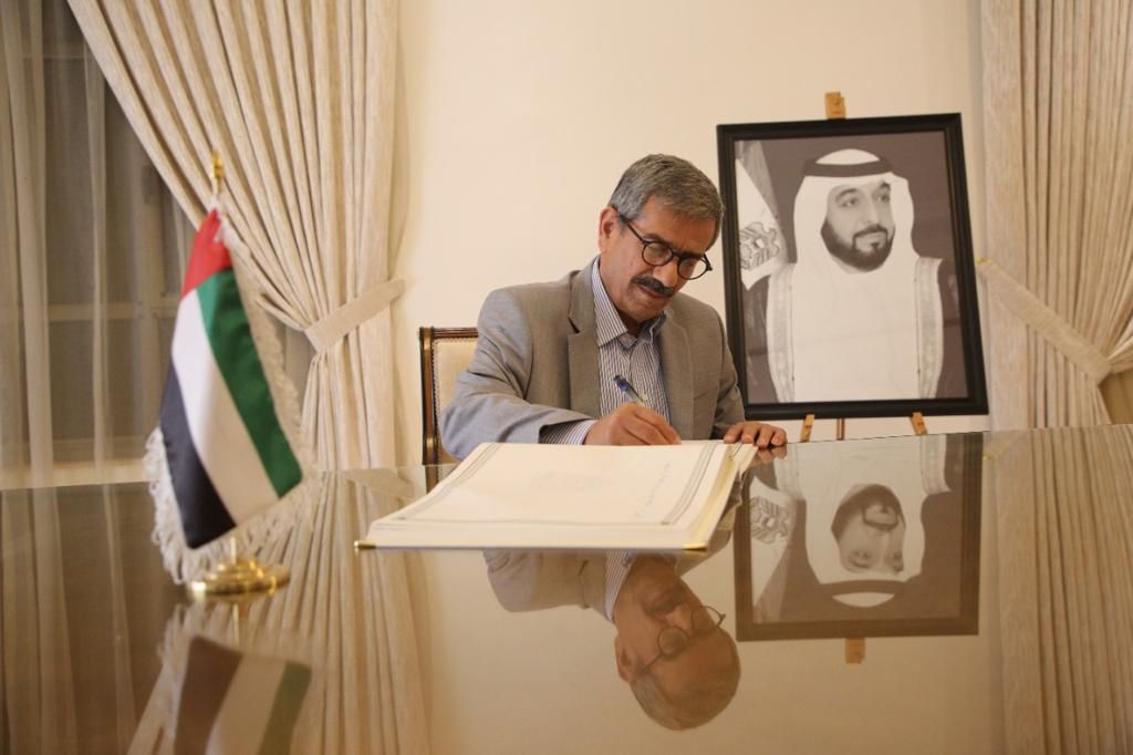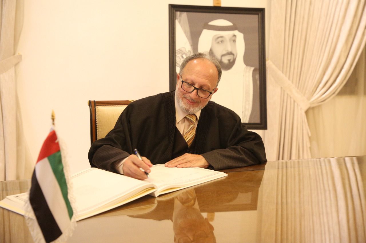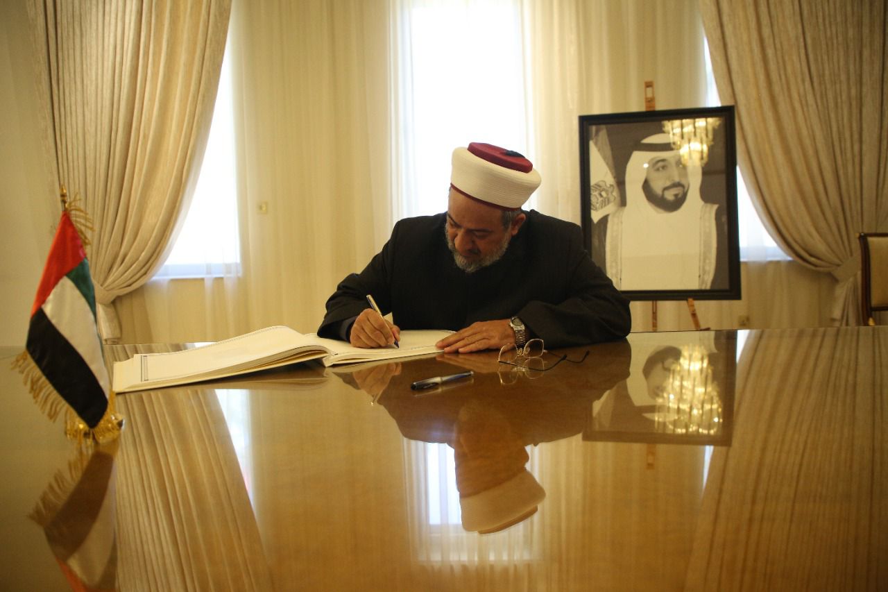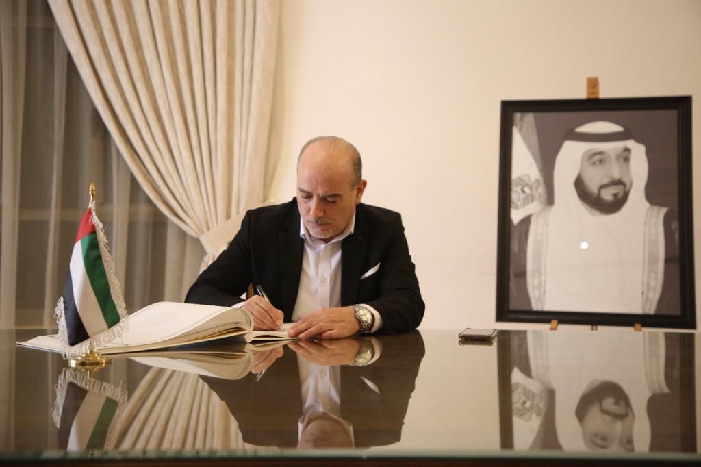 قدّم المسؤولون وكبار الشخصيات والأوساط الرسمية والشعبية والدبلوماسية في المملكة الأردنية الهاشمية في اليوم الأخير الجمعة لسجل العزاء الذي اقيم في مقر إقامة سفير دولة الإمارات، واجب العزاء بوفاة فقيد الأمة المغفور له بإذن الله الشيخ خليفة بن زايد آل نهيان، مستذكرين انجازاته الكبيرة ومسيرته الخيّرة ومواقفه الصادقة تجاه الأمتين العربية والإسلامية والإنسانية جمعاء.