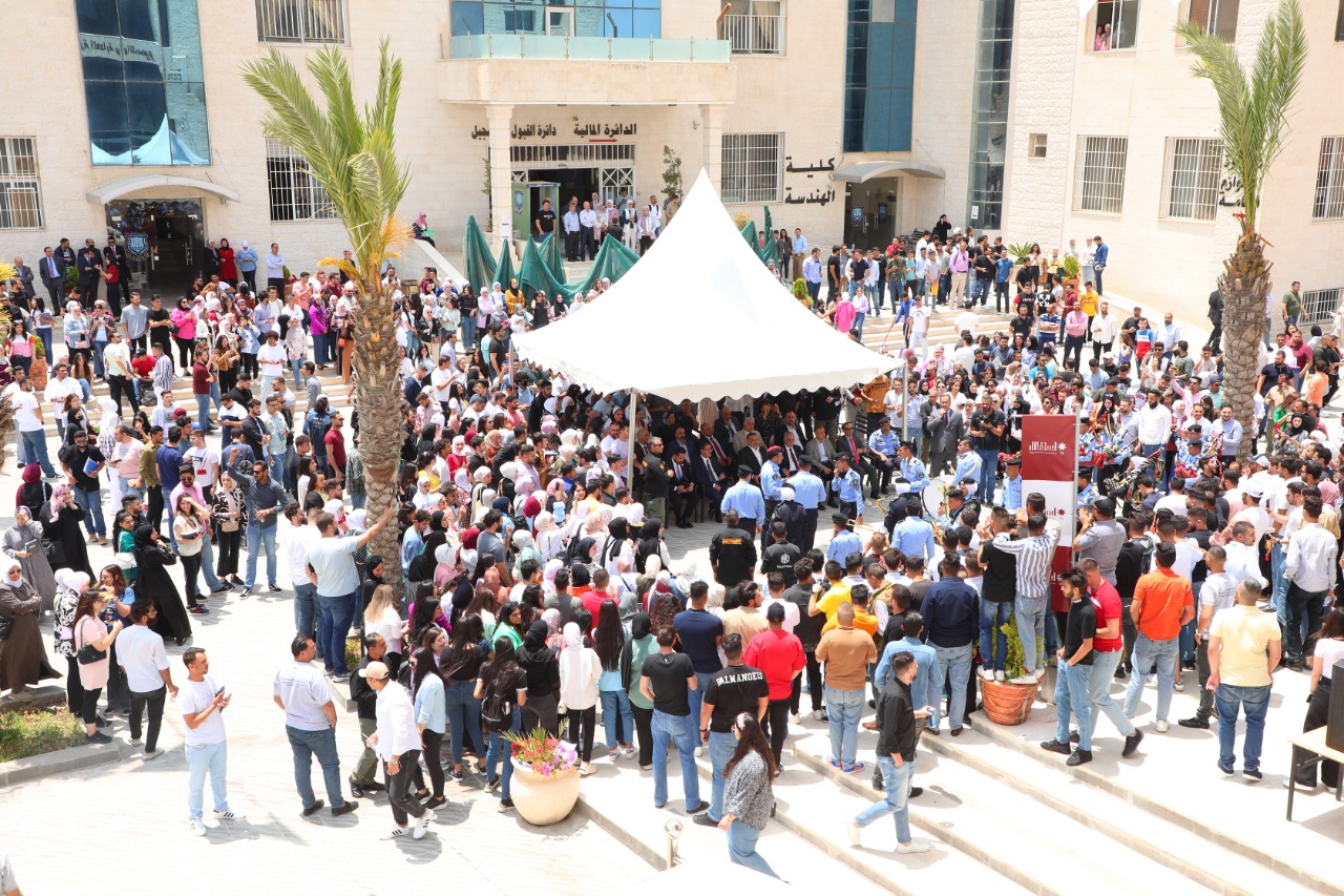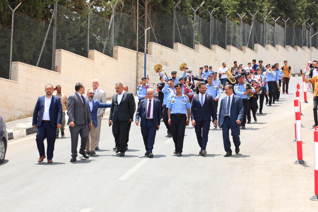وبدأت الجامعة احتفالها بهذه المناسبة العزيزة على قلوب كل الأردنيين بمسيرة من بوابة الجامعة وصولاَ إلى كلية الآداب والعلوم (وسط الجامعة) تخللها تقديم عروض فنية لموسيقات الأمن العام.