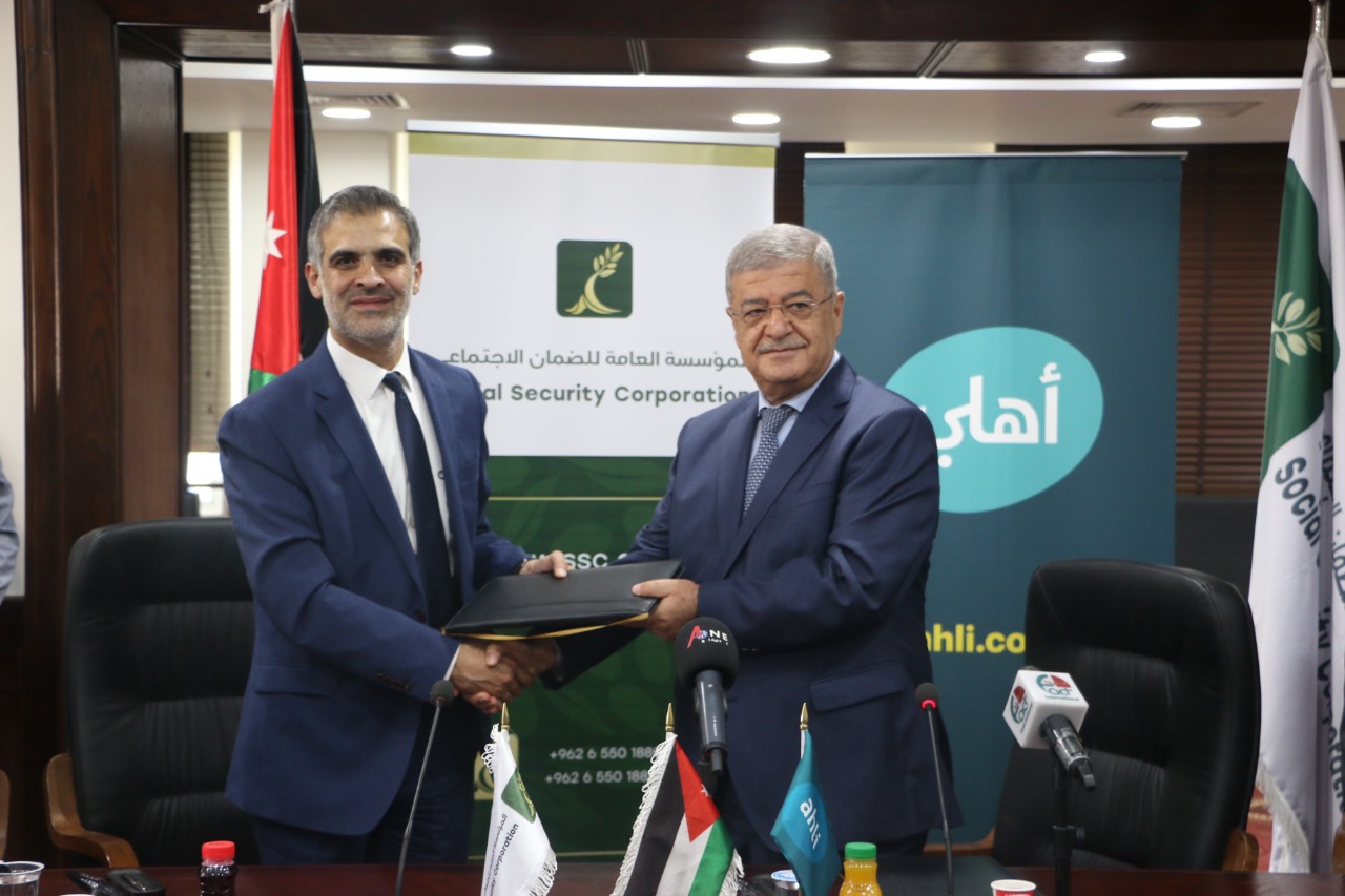 اتفاقية تعاون بين الضمان الاجتماعي والبنك الأهلي الأردني لتقديم خدمات برنامج تقسيط