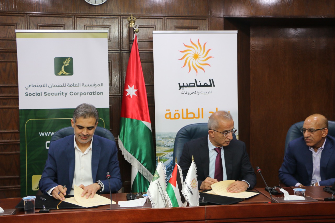 وقعت المؤسسة العامة للضمان الاجتماعي والشركة الأردنية الحديثة لخدمات الزيوت والمحروقات (محطة المناصير للمحروقات) اتفاقية تعاون لتقديم خدمات للمتقاعدين الأردنيين وأبناء قطاع غزة وأبناء الأردنيات ومستحقيهم من الأرامل والوالدين ضمن برنامج تقسيط الذي أطلقته المؤسسة مؤخراً، ويبدأ تفعيل الاتفاقية اعتباراً من يوم الإثنين القادم.