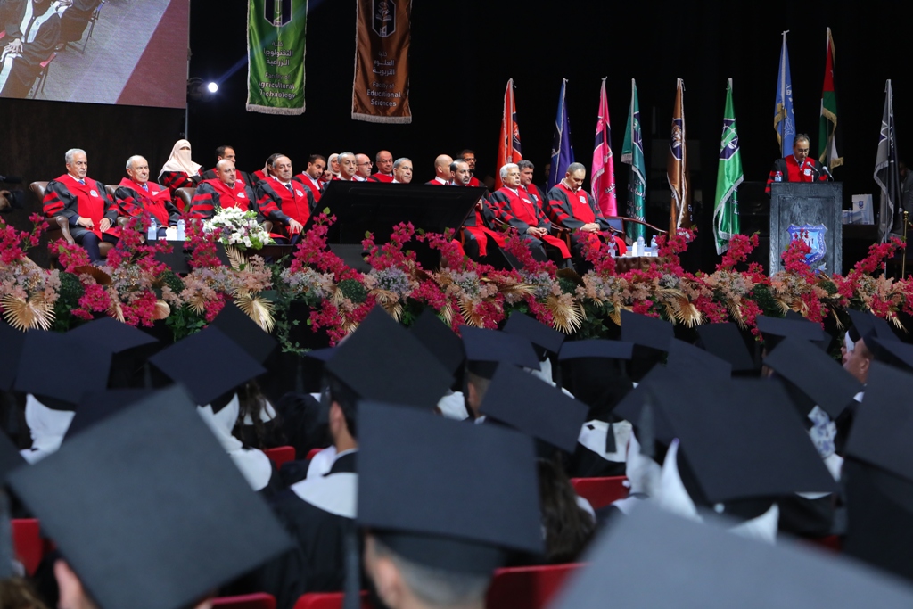 • وقد بُدأت الاحتفالات " في اليوم الاول للحفل" بتخريج طلبة كلية الصيدلة حيث ألقى عميد شؤون الطلبة الدكتور مصطفى عطيات كلمة الجامعة في الحفل رحب فيها بمعالي راعي الحفل وأعضاء مجلس أمناء الجامعة وعطوفة الدكتور ماهر الحوراني رئيس هيئة المديرين وعطوفة الأستاذ الدكتور ساري حمدان رئيس الجامعة والسادة العمداء وأعضاء الهيئتين التدريسية والادارية والطلبة الخريجين وذويهم ثم قال :