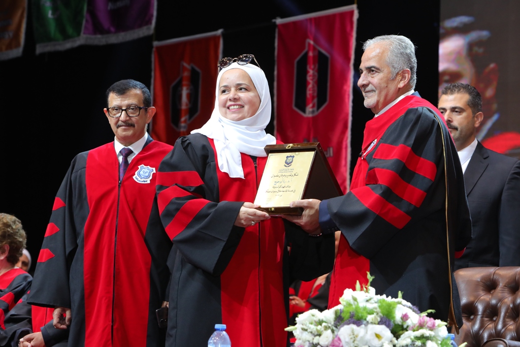 • وكذلك تكريم الاستاذه الدكتورة رنا ابوحويج وذلك لجهودها المبذولة في خدمة الجامعة خلال سنوات عملها.
