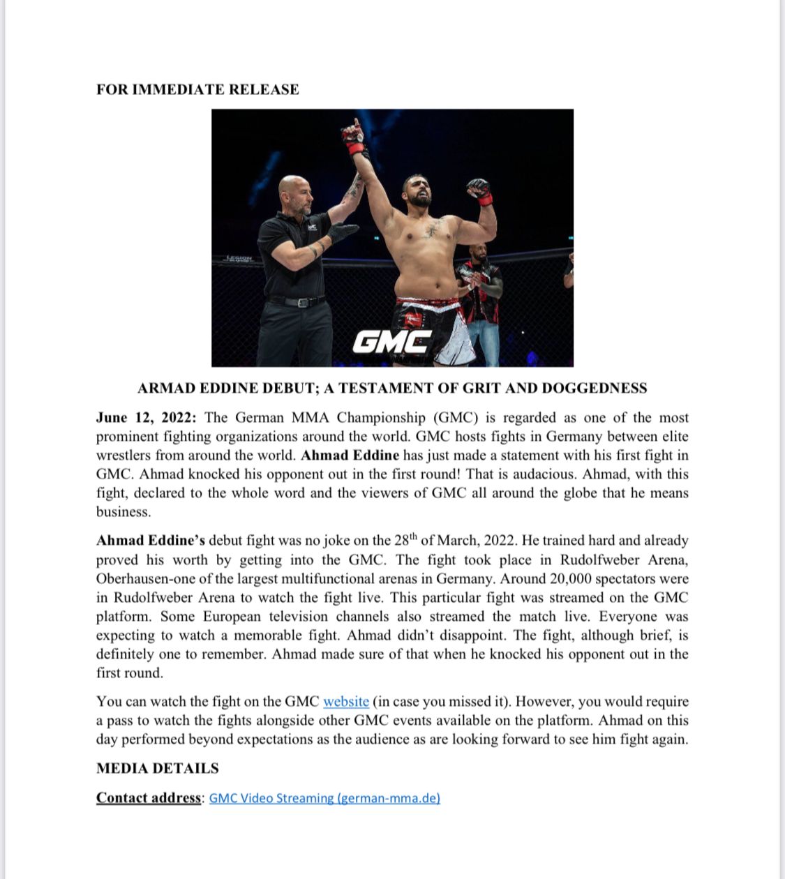 الإبداع والتميّز لا يقتصر على الكتابة والشعِر بل يتعداها الى مجالات كثيرة ومنها الرياضة وتحديدا" الفنون القتالية المختلطة التي لمع فيها أحمد شرف الدين مؤسس نادي دوحة كيك بوكسينغ من خلال البطولة الاحترافية (GMC -German MMA Championship) في المانيا احد اكبر المنظمات القتالية في العالم و التي تضم اقوى المقاتلين في العالم و هو الوحيد الذي قد شارك فيها من منطقتنا العربية و انتزع فيها الفوز في الجولة الاولى بالضربة القاضية في ٢٧ ثانية فقط وأهدى فوزه لدولة قطر الحبيبة ..