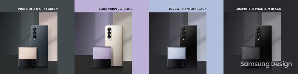 ويجسد اللون المميز في المجموعة "بورا البنفسجي" التراث الملون لسلسلة جالكسي في جهاز Z Flip4، بينما يمثل اللون الوردي المشرق والأنيق خياراً أكثر حيادية. وتتميز السلسلة الجديدة أيضاً بتوظيف مجموعة الظلال الجديدة من الأزرق الخفيف والسلس، ودرجة بسيطة وجذابة من الجرافيت. وتضفي درجات ألوان الباستيل لخيارات الألوان الموجودة في جالكسي Z Flip4 طابعاً من الحداثة على الجهاز، كما تعكس أحدث الاتجاهات السائدة للألوان.