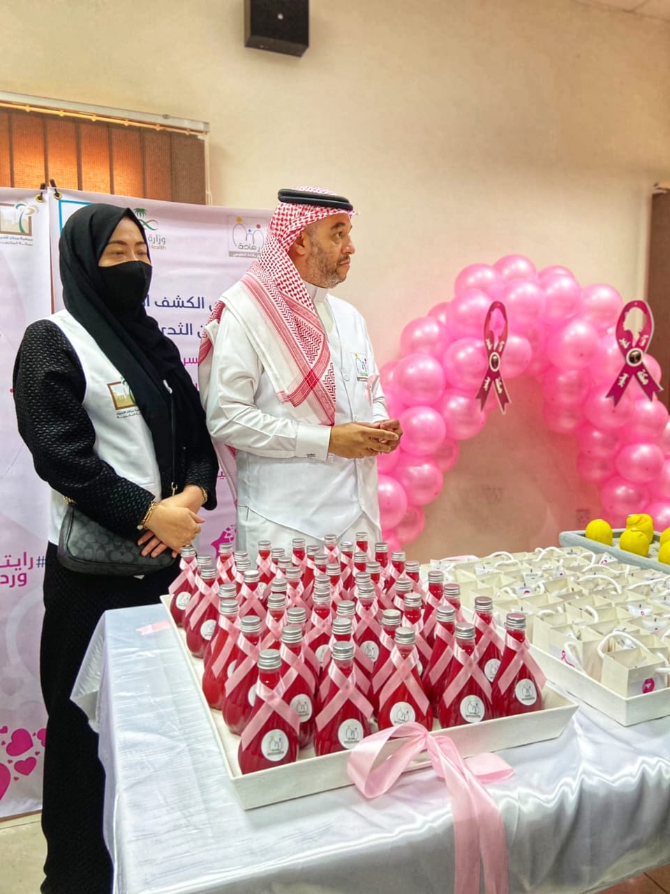 فريق رفادة التطوعي والتابع لجمعية مراكز الأحياء بمكة المكرمة اليوم الأربعاء الثالث والعشرين من شهر ربيع الأول الحالي 1444 هجرية مع مركز صحي الإسكان بحي الملك فهد بمكة المكرمة والتجمع الطبي - وجامعة ام القرى - ومدرسة البراء بن مالك الإبتدائية في تفعيل الشهر العالمي لسرطان الثدي تحت شعار رايتك وردية من خلال اللقاء التوعوي التثقيفي عن سرطان الثدي وأعراضه وطرق الوقاية منه
