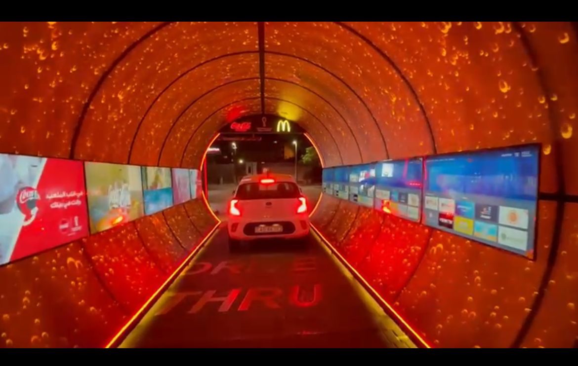 وسيخدم هذا الممر طلبات السيارات في مطعم ماكدونالدز شارع المدينة المنورة حيث يتيح للسيارة الدخول عبر الممر والاستمتاع بأجواء كأس العالم المميزة من خلال شاشات العرض العملاقة المتاحة داخل العبوة والتي يتطي شعور مشابه للأجواء داخل ملعب كرة القدم.