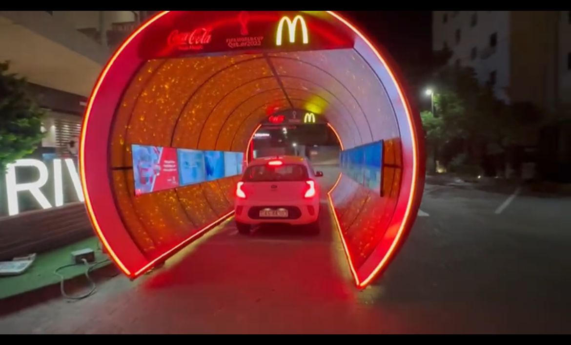 FIFA 2022 اطلقت كوكا كولا الراعي الرسمي لبطولة كأس العالم، ممراً خاصاً بسيارات خدمة الطلبات، تم تصميه على شكل عبوة كوكا كولا الفريدة والمتميزة