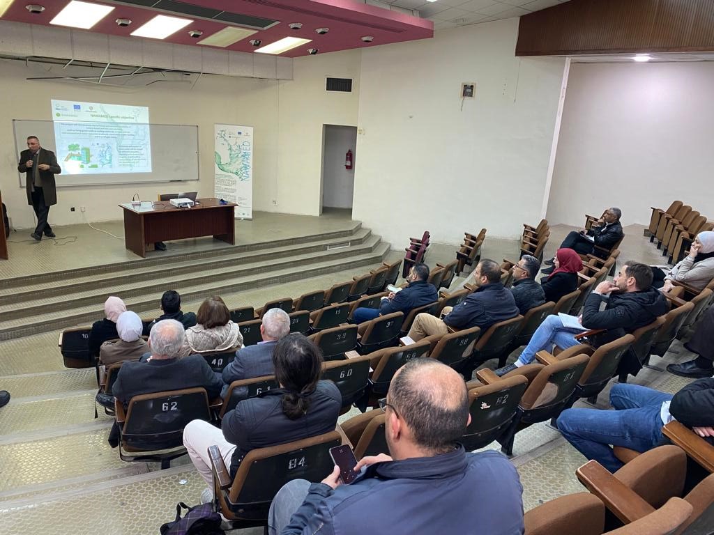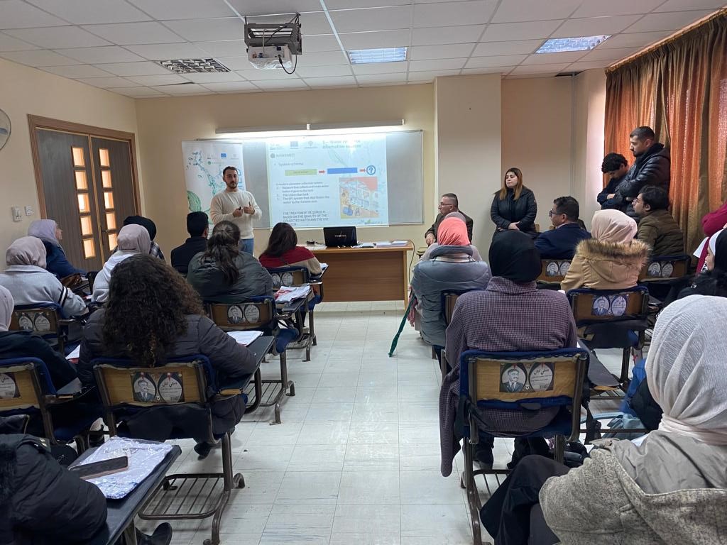 بعد ذلك، قدم الخبراء المعماري ريكاردو سيليا والمعمارية باربارا بوناديس من الشركة الإيطالية محاضرة توعوية للمشاركين عن طرق توفير المياه وكيفية تصميم وتطبيق الحلول القائمة على الطبيعة لمعالجة المياه، كما تم تقديم شرح عن تصميم المحطة التجريبية لمعالجة المياه الرمادية في سكن الزهراء في الجامعة الأردنية.