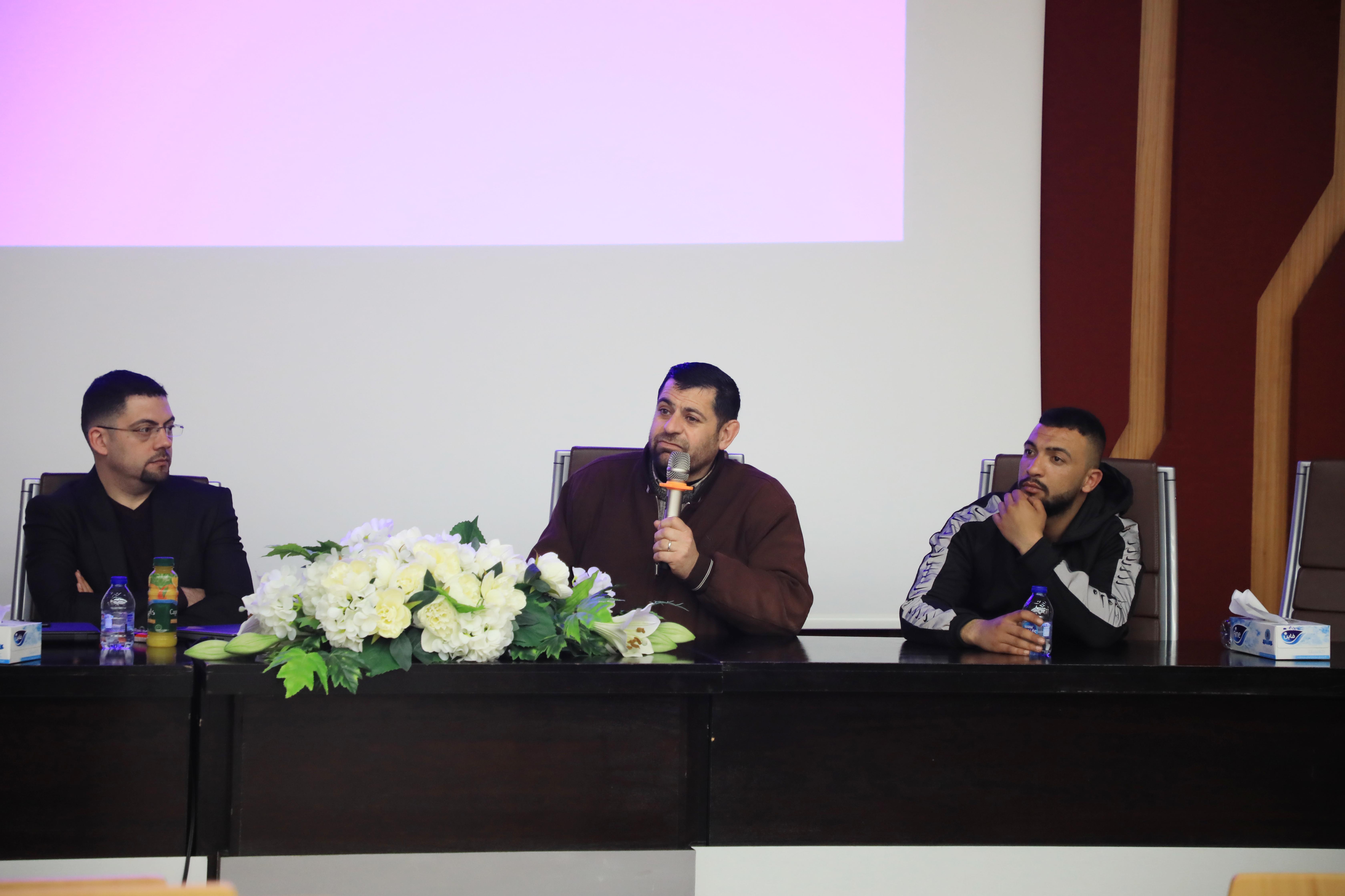 وحضر والورشة، أساتذة الاعلام في الجامعة الدكتور محمود خلوف، والأستاذ صدقي موسى، والاستاذة ديما عساف، ومجموعة من طلبة القسم.