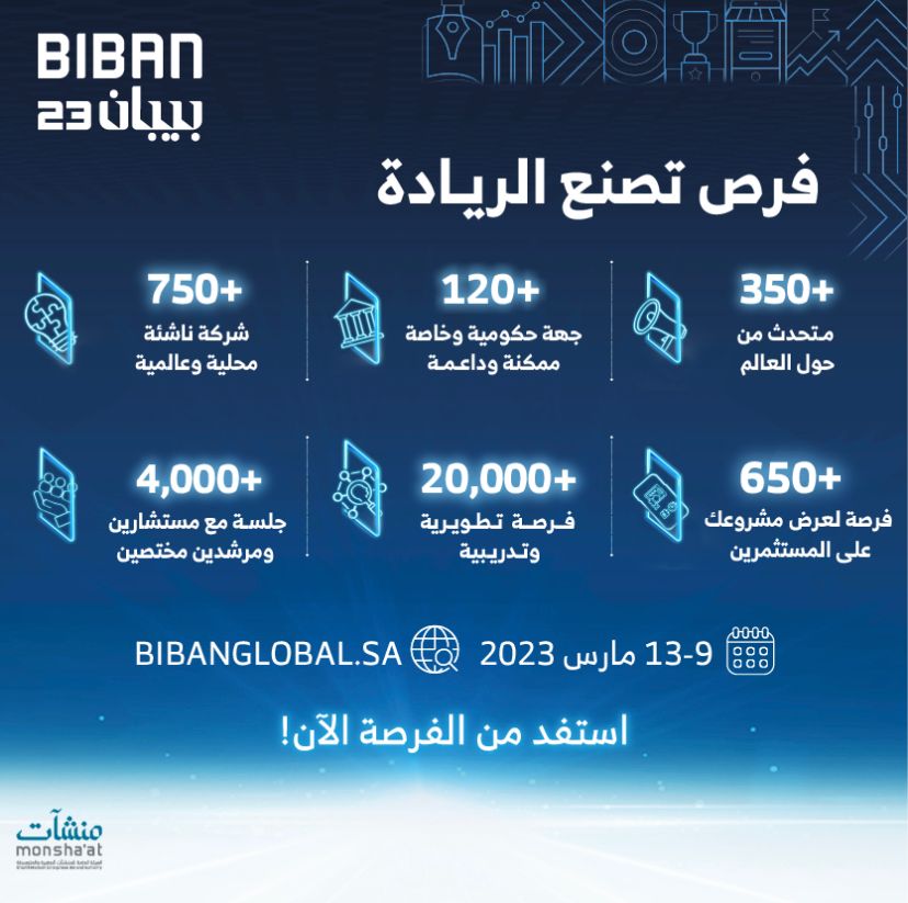 《منشآت》 تنظم ملتقى 《بيبان 23》في مارس المقبل.. بمشاركة 350 متحدثاً عالمياً ومحلياً