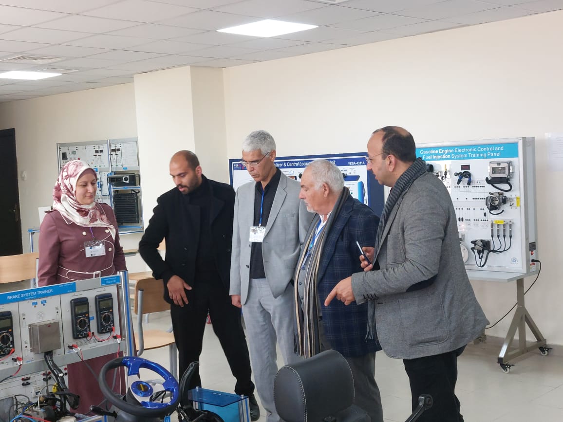 كما قامت السيدة حلا معاقبة المدير الفني للمشروع بالترحيب بالضيوف و قامت الدكتورة ولاء الصمادي مدير مكتب المشاريع الدولية في الكلية بإصطحابهم بجولة تعريفية على مرافق و مختبرات الكلية