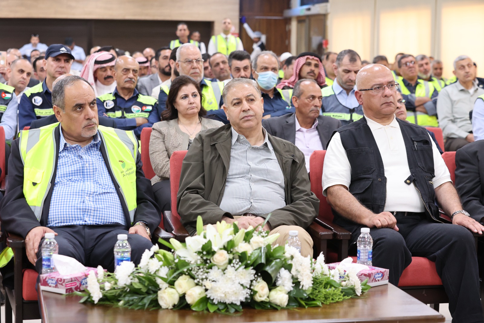وحضر الحفل رئيس مجلس إدارة شركة مناجم الفوسفات الأردنية الدكتور محمد الذنيبات، ورئيس مجلس إدارة شركة البوتاس العربية المهندس شحادة أبو هديب، والرئيس التنفيذي لشركة البوتاس العربية الدكتور معن النسور ، ورئيس الإتحاد العام لنقابات عمال الأردن مازن المعايطة، ونائب رئيس الاتحاد العام لنقابات عمال الأردن/ رئيس النقابة العامة للعاملين في المناجم والتعدين والإسمنت خالد الفناطسة، وعدد كبير من موظفي الشركتين.