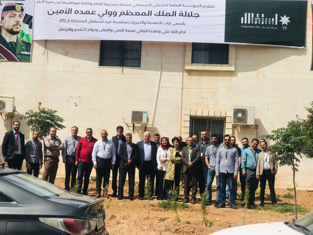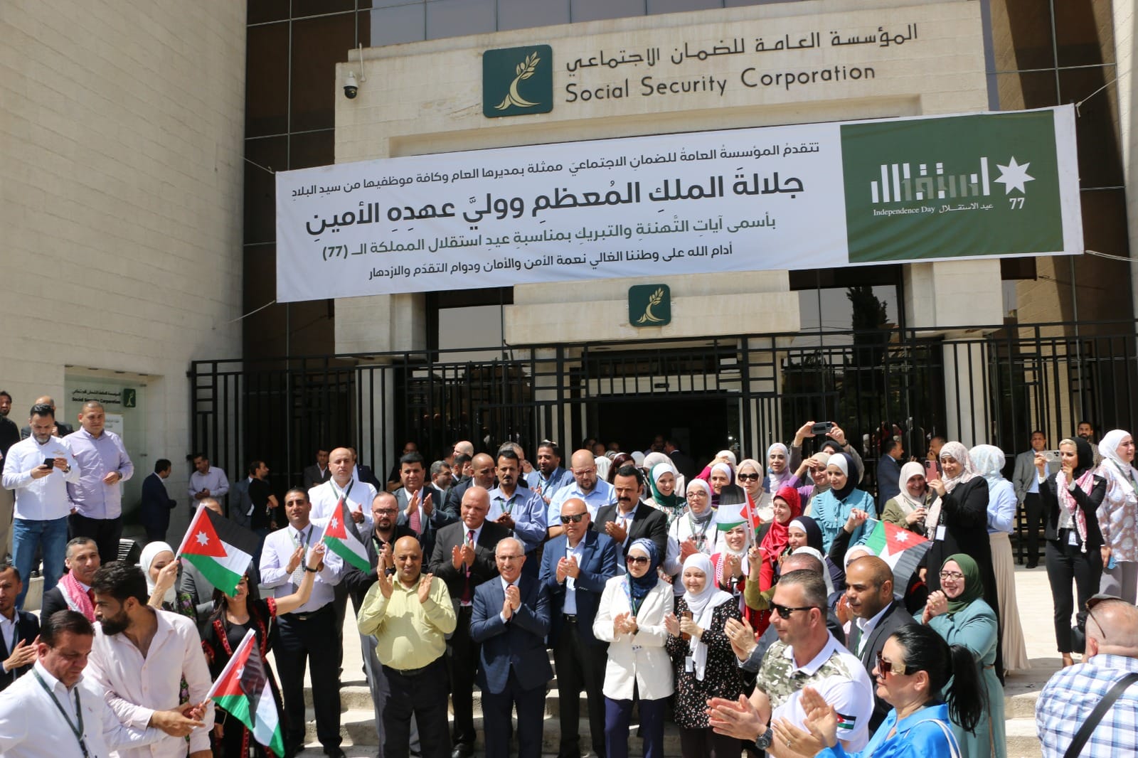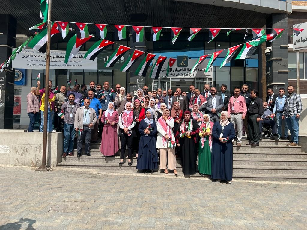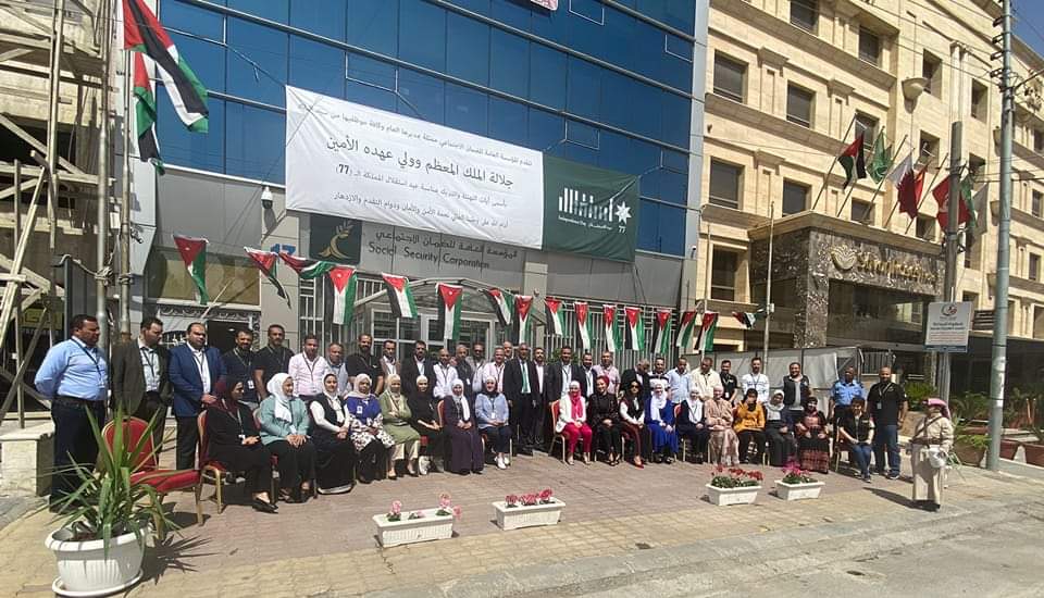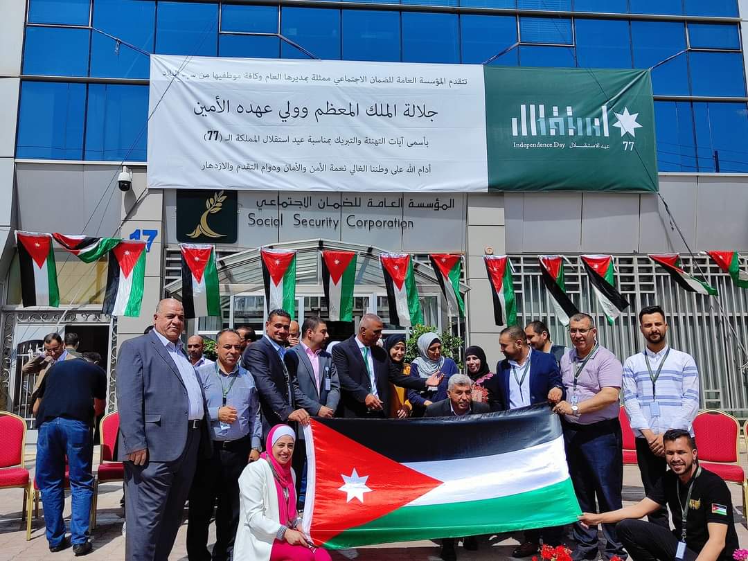 احتفلت المؤسسة العامة للضمان الاجتماعي بمبنى الإدارة العامة وكافة فروعها المنتشرة في مختلف محافظات المملكة بمناسبة عيد الاستقلال الـــ (77) الذي يصادف في الخامس والعشرون من شهر أيار من كل عام.