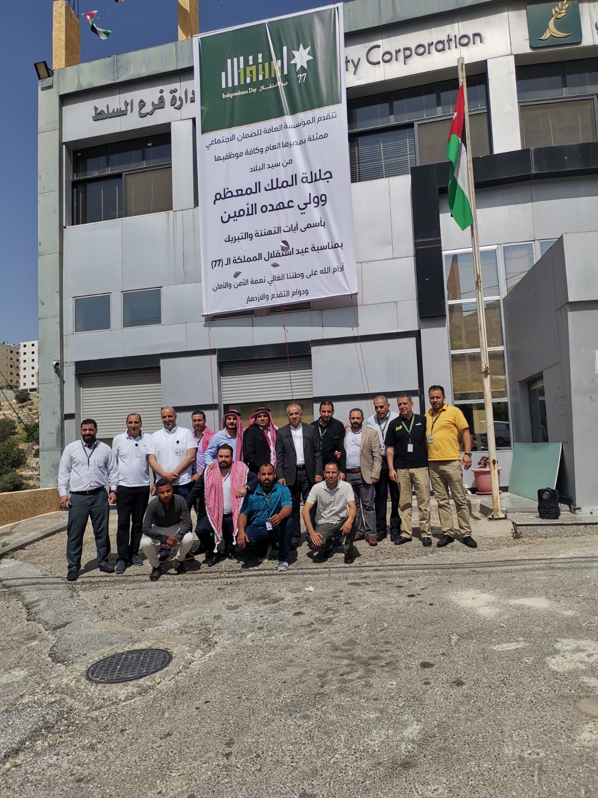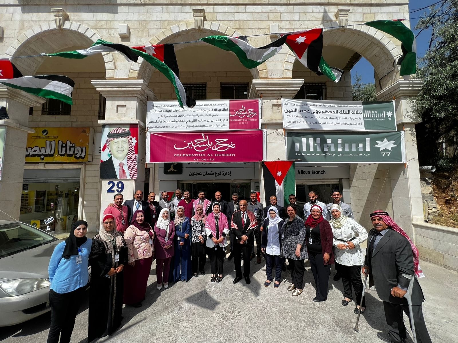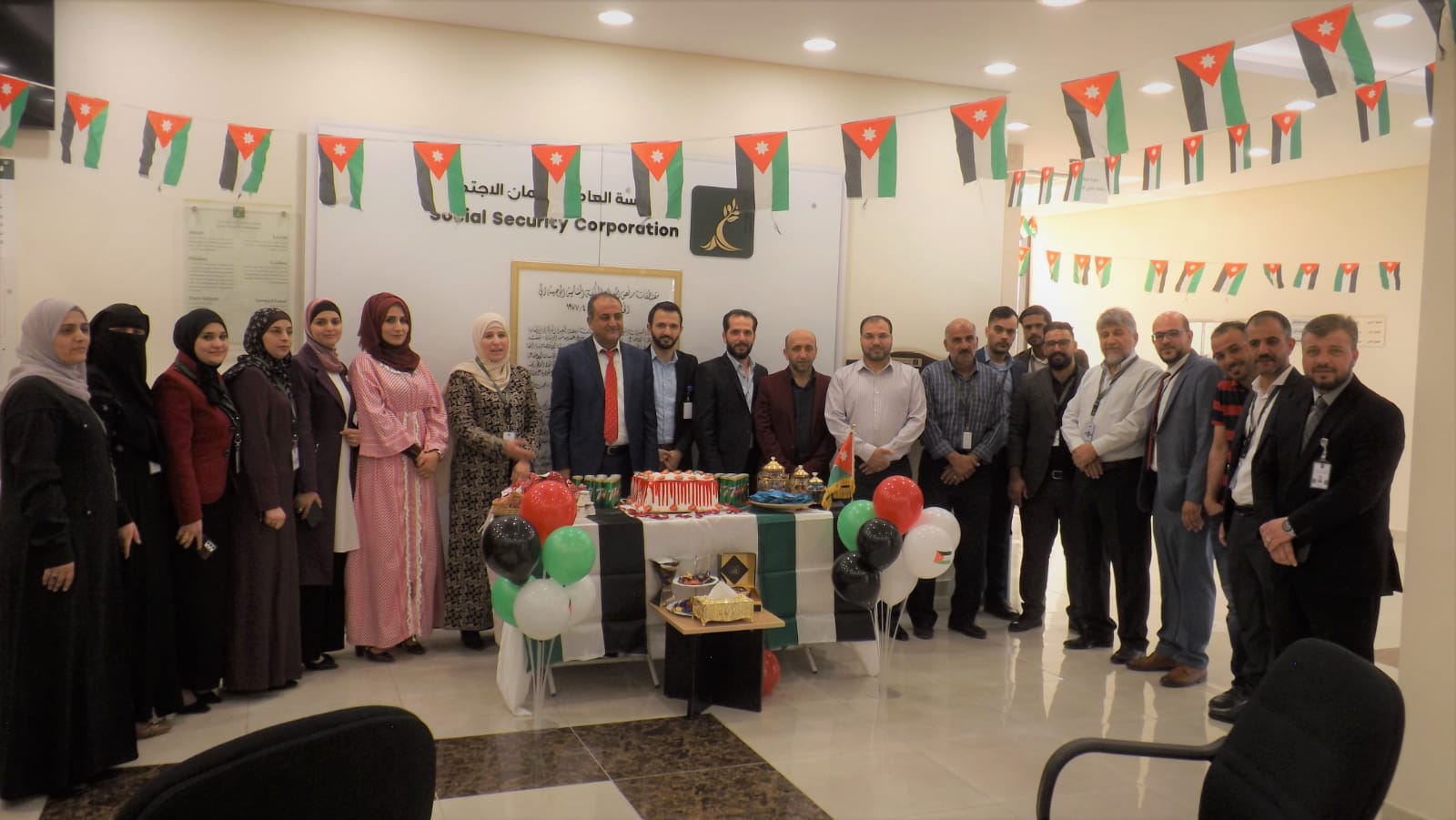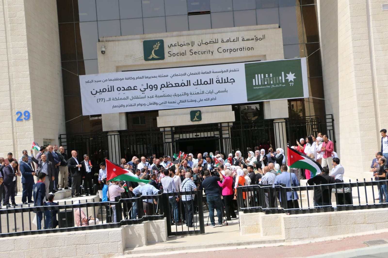 احتفلت المؤسسة العامة للضمان الاجتماعي بمبنى الإدارة العامة وكافة فروعها المنتشرة في مختلف محافظات المملكة بمناسبة عيد الاستقلال الـــ (77) الذي يصادف في الخامس والعشرون من شهر أيار من كل عام.