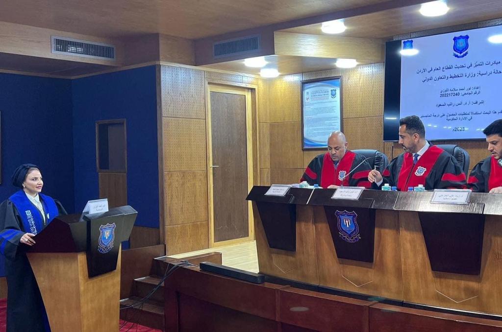نوقشت في كلية الاعمال بجامعة عمان الاهلية رسالة ماجستير للمهندسة نور اللوزي في الادارة الحكومية تحت عنوان "دور مبادرات التميّز في تحديث القطاع العام في الأردن" والتي تكاد أن تكون هذه الدراسة من أولى الدراسات بهذا الموضوع في الأردن .