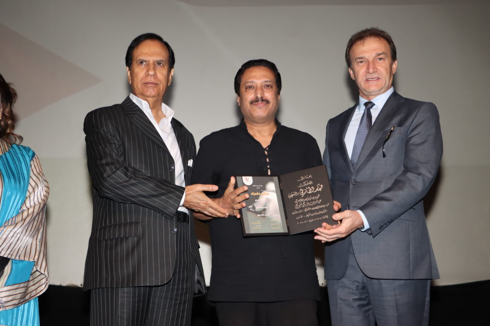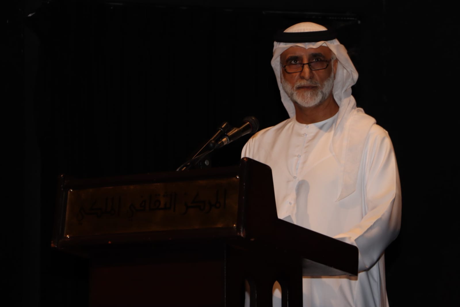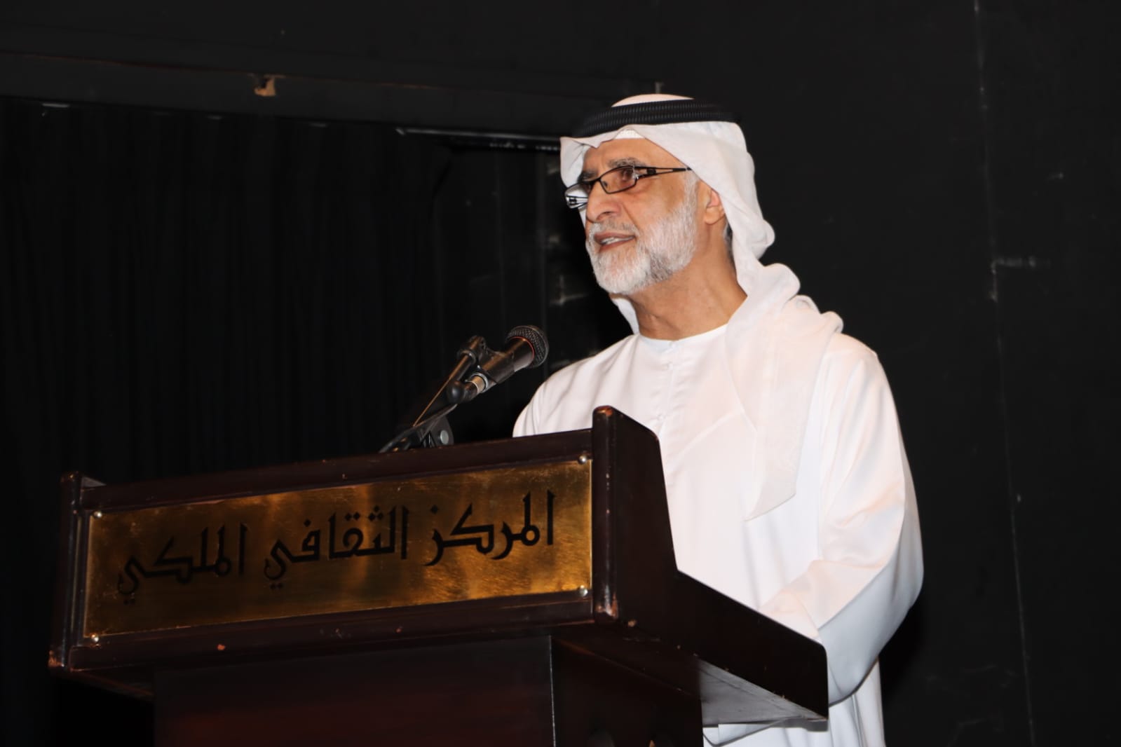 وقبيل اعلان النتائج النهائية للعروض المشاركة ألقى الدكتور حبيب غلوم رئيس لجنة التحكيم لمهرجان المونودراما المسرحي في دورته الثانية كلمة اللجنة التي شكلت بعضوية د. محمد واصف من الاردن والفنانة التونسية وحيدة الدريدي والدكتور حبيب غلوم من الإمارات.