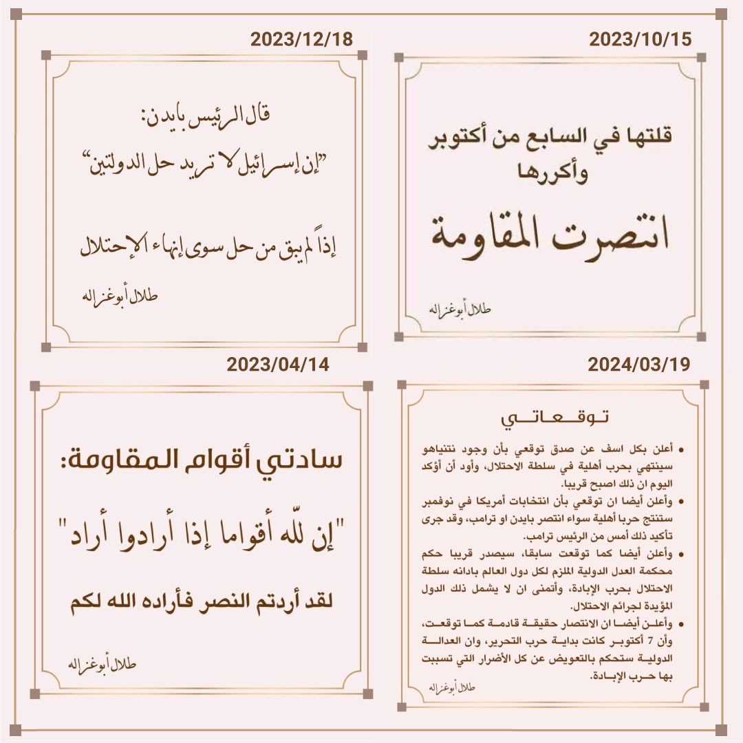 منذ اللحظة الأولى، قلتها بيقين في الحادي عشر من أكتوبر 2023، وكررتها في الثالث والعشرين من عام 2024؛ الاحتلال لن ينتصر على شعبٍ تجذرت حقوقه في الأرض والتاريخ، شعب يرفض الاستسلام، ويواصل النضال من أجل الحرية والكرامة.