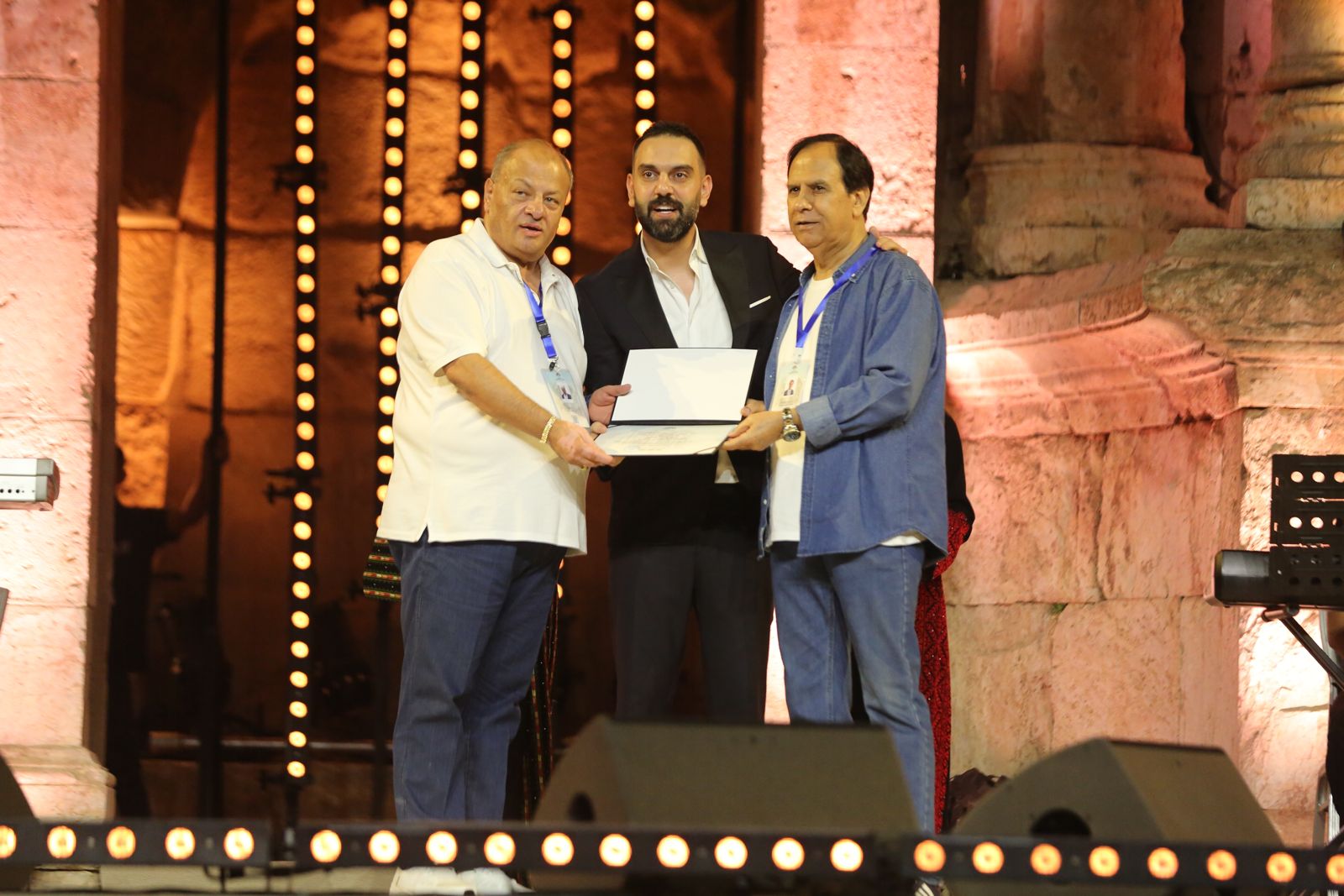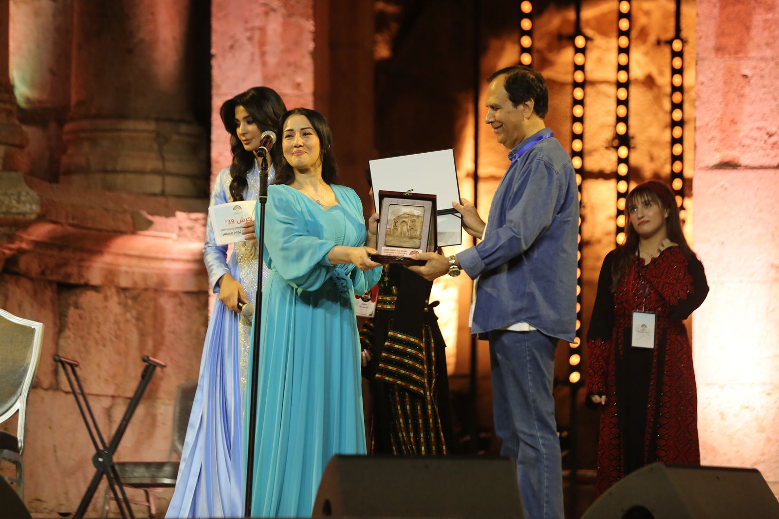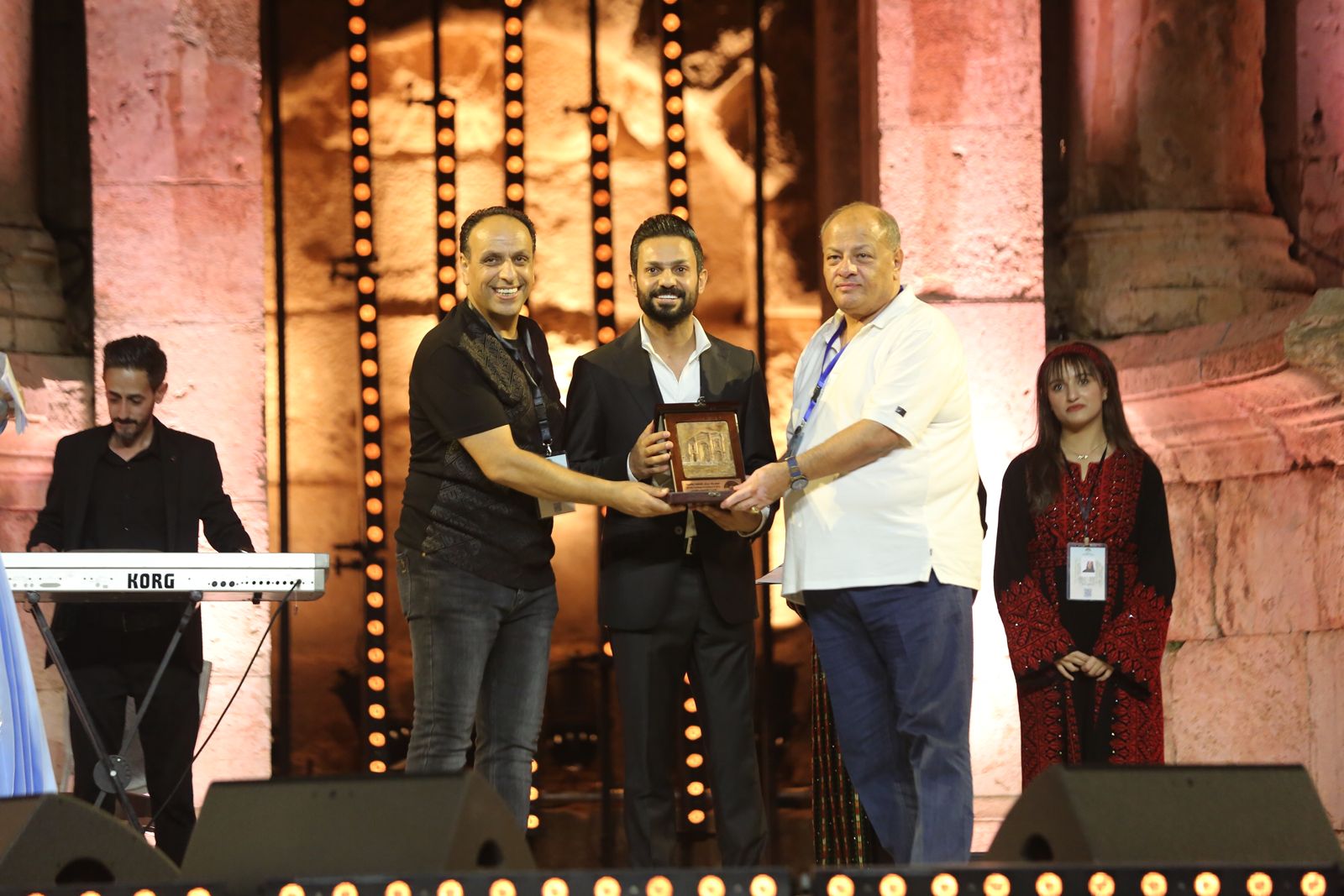 وتم تكريم الفنان نجم السلمان من قبل نقيب الفنانين ومدير المهرجان.