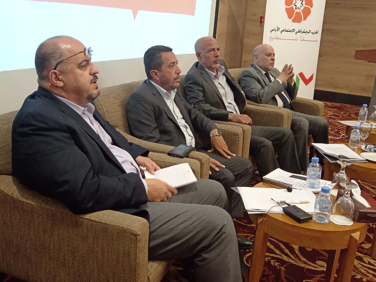 أما الكاتب والمحامي جمال القيسي، فتناول في مداخلته المعنونة “كيف تمثلت قيم الديمقراطية الاجتماعية في ورقة الحزب الديمقراطي الاجتماعي”، سعي الحزب لتجسيد قيم العدالة والحرية والتضامن، من خلال تعزيز الركائز الثلاث للديمقراطية الاجتماعية وهي: تعميق قيم المواطنة، وترسيخ سيادة القانون، وتحقيق مبدأ تكافؤ الفرص.