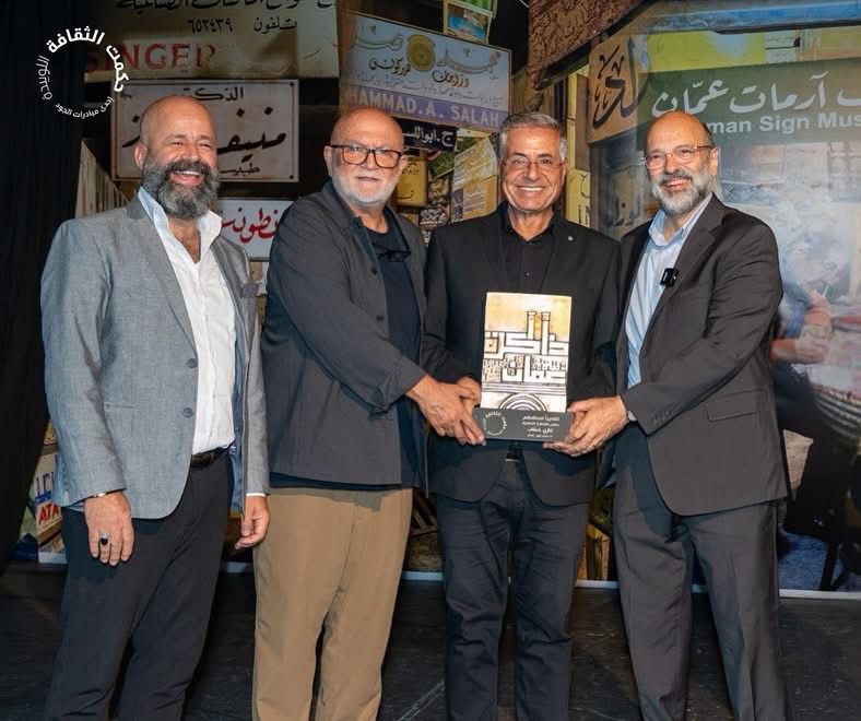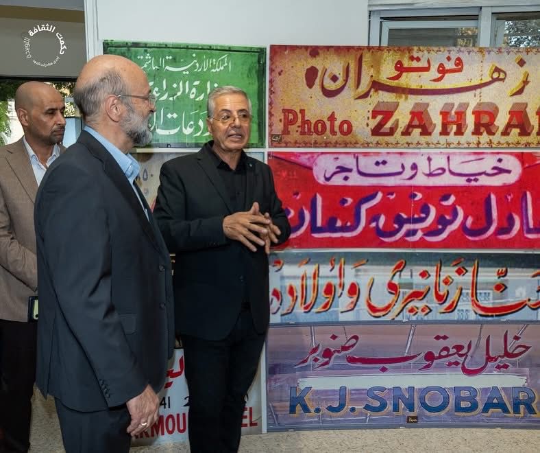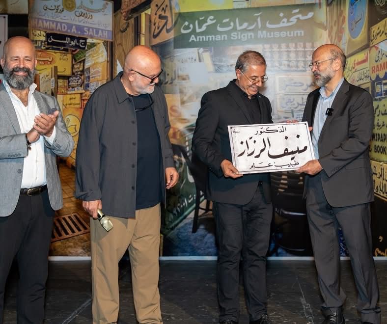 قامت مؤسسة "حكمت الثقافة" مساء السبت 11 أكتوبر 2025، وبرعاية خاصة من دولة رئيس الوزراء الأسبق الدكتور عمر الرزاز، وبحضور مندوب وزير الثقافة الفنّان عبدالكريم الجرّاح مدير مسرح أسامة المشيني، بتكريم مؤسّس وأمين "متحف آرمات عمّان" السيد غازي خطاب، في حفل احتضن فعالياته مسرح أسامة المشيني؛ وتابعه نخبة كبيرة من المثقفين والمهتمين من الخطاطين والزوار، وأدار فعالياته الشاعر محمد خضير.. ضمّ الحفل معرضًا لنسخ من اللوحات الإعلانية، حمل اسم "العودة إلى الأمام – ذاكرة مدينة وتكريم".